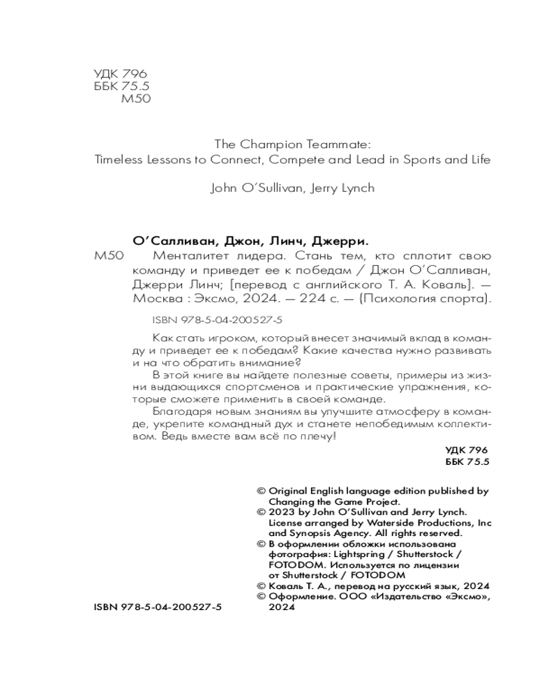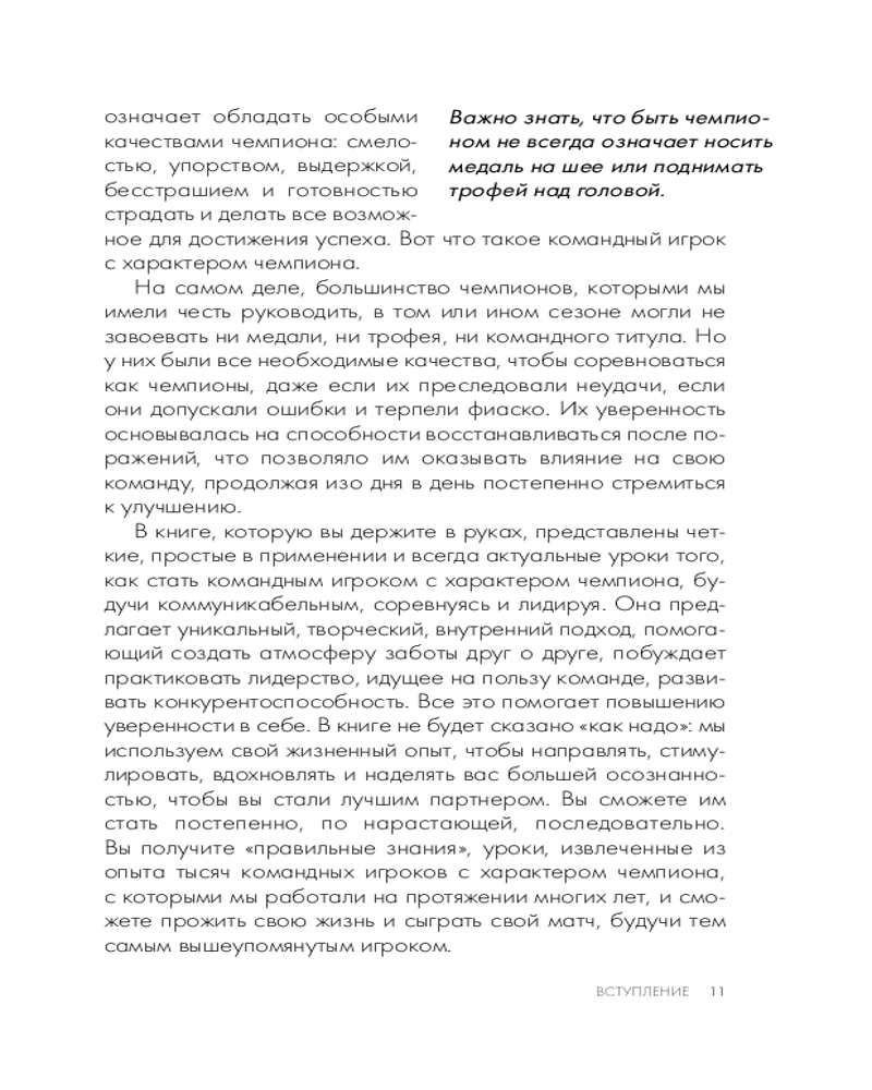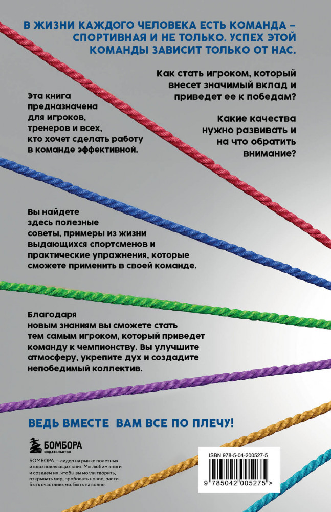 Серия: Психология спорта В жизни каждого человека есть команда — спортивная и не только. Успех этой команды зависит только от нас. Как стать игроком, который внесет значимый вклад и приведет её к победам? Какие качества нужно развивать и на что обратить внимание? Эта книга предназначена для игроков, тренеров и всех, кто хочет сделать работу в команде эффективной. Вы найдете здесь полезные советы, примеры из жизни выдающихся спортсменов и практические упражнения, которые сможете применить в своей команде. |