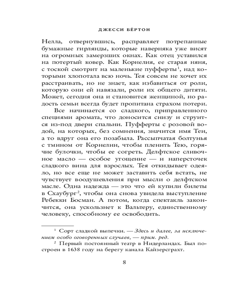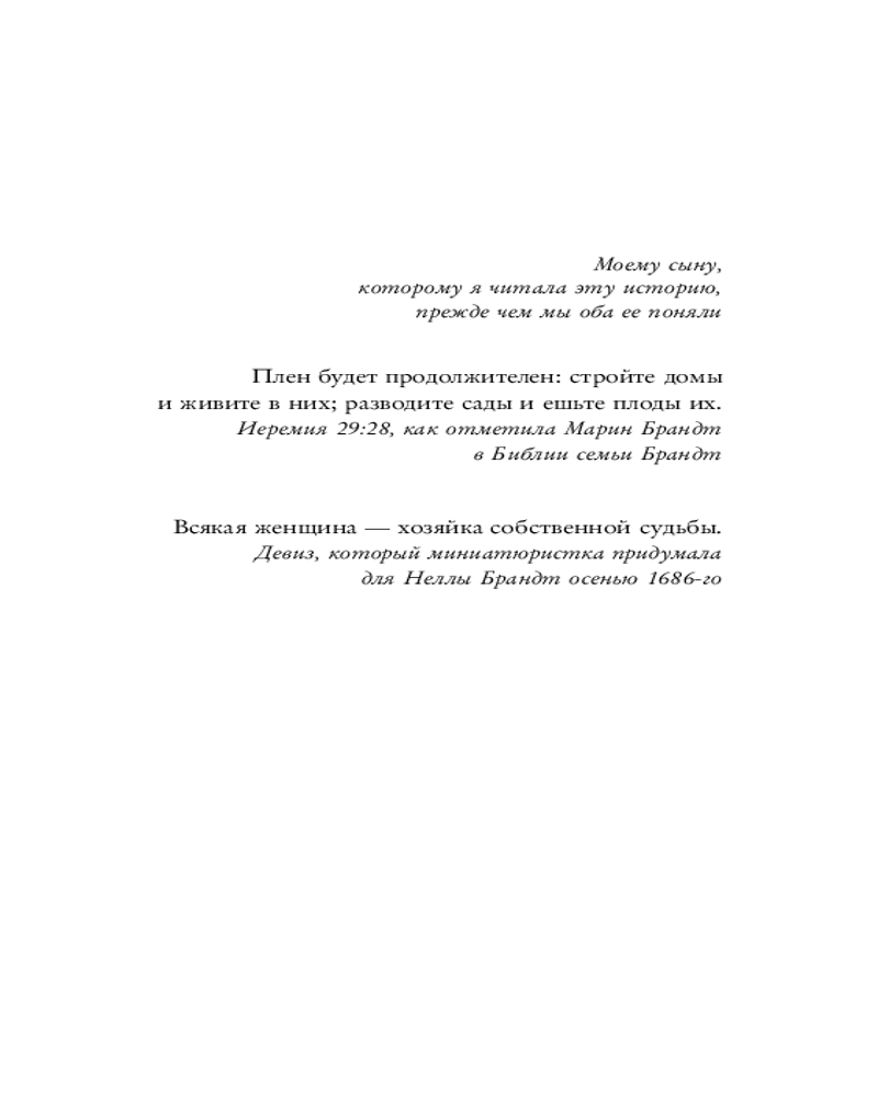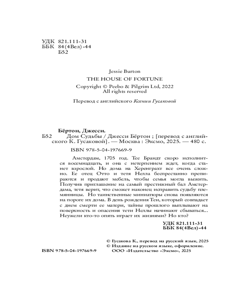 Серия: Loft. Джесси Бёртон Амстердам, 1705 год. Тее Брандт скоро исполнится восемнадцать, и она с нетерпением ждет, когда станет взрослой. Но дома на Херенграхт всё очень сложно. Ее отец Отто и тетя Нелла беспрестанно препираются и продают мебель, чтобы семья могла выжить. Получив приглашение на самый престижный бал Амстердама, тетя верит, что сможет наконец исправить судьбу племянницы. Но таинственные миниатюры снова появляются на пороге их дома. В день рождения Теи, который совпадает с днем смерти ее матери, тайны прошлого выплывают на поверхность, и опасения тети Неллы начинают сбываться... Неужели кто-то опять играет их жизнями? Но кто? |