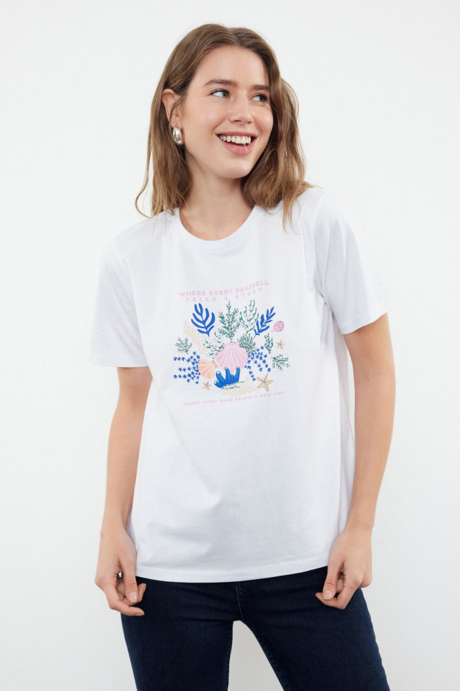 Женская футболка — это базовый элемент гардероба, который сочетает комфорт и универсальность. Она идеально подходит для повседневных образов, отдыха и спорта. Женская футболка легко сочетается с джинсами, юбками или шортами, создавая стильные и расслабленные образы для любого случая.
