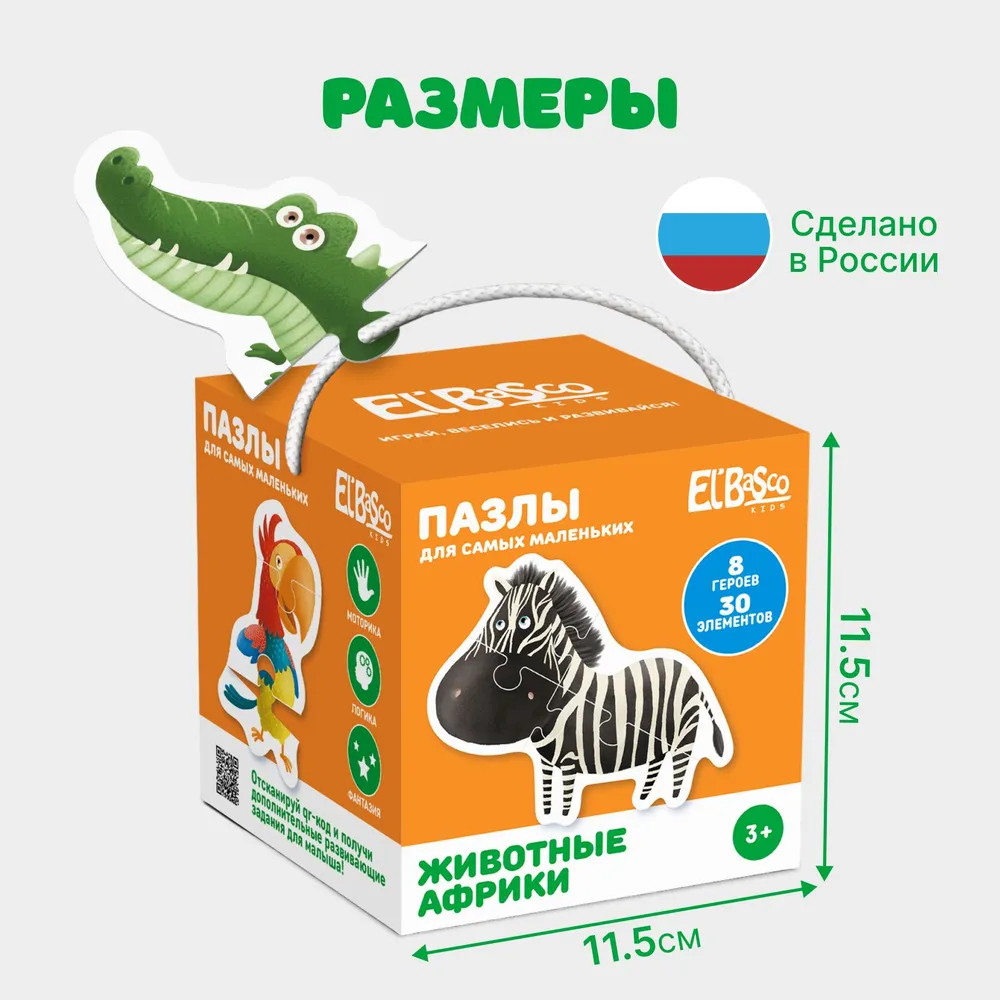 Пазлы для самых маленьких — это пазлы с крупными деталями для развития мелкой моторики рук, логики, памяти, мышления и расширения словарного запаса у малышей. Пазлы помогут в игровой форме изучать животных, придумывать истории о них, запоминать части тела и учить звуки, которые издают звери. Для ребенка это идеальный пазл — крупные детали легко брать в руку малышу, они не теряются, а также это компактная и удобная игра в дорогу или в путешествие. Набор состоит из 30 пазловых элементов, которые складываются в 8 ярких картинок. |