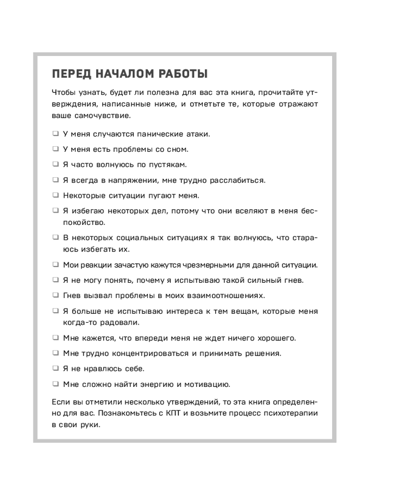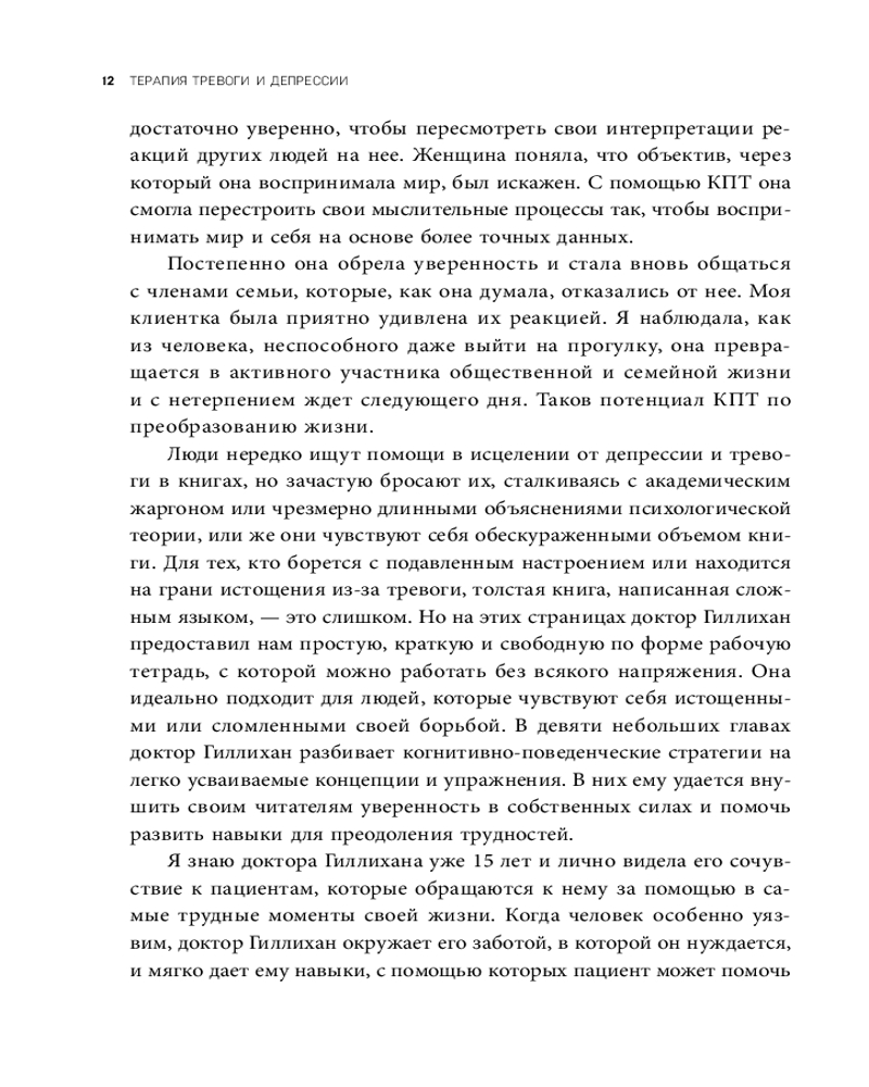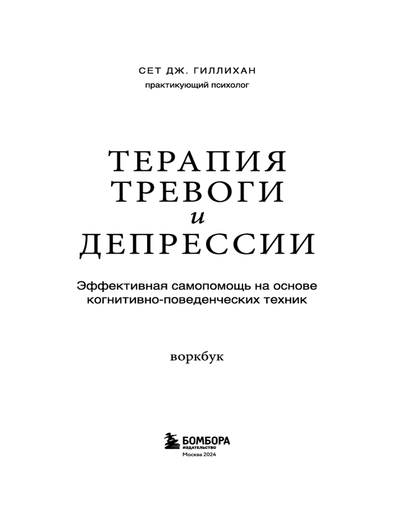Терапия тревоги и депрессии. Эффективная самопомощь на основе когнитивно-поведенческих техник. ВоркбукВ данный момент этот товар отсутствует в продаже. Возможно, у нас найдется аналогичный или похожий товар здесь. Серия: Советы психолога. Как самостоятельно решить свои проблемы Депрессия или тревога, хронические или нерегулярные, осложняют повседневную жизнь дискомфортными реакциями, а порой делают ее невыносимой. Сет. Дж. Гиллихан, лицензированный психотерапевт и специалист в области когнитивно-поведенческой терапии (КПТ), разработал семинедельный план восстановления, который поможет самостоятельно освоить навыки КПТ, необходимые в лечении депрессивных и тревожных расстройств. |