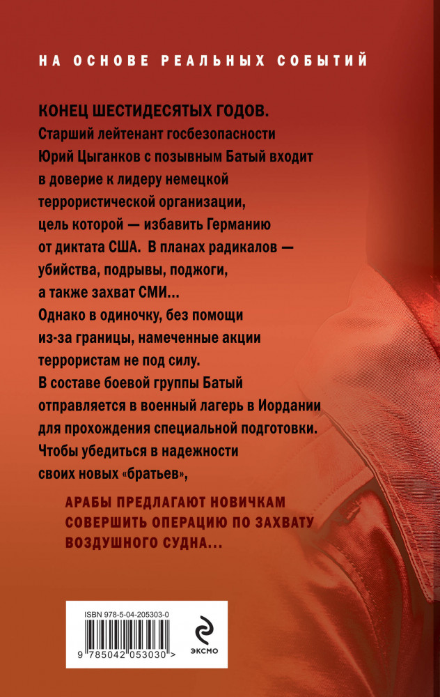 Конец шестидесятых годов. Старший лейтенант госбезопасности Юрий Цыганков с позывным Батый входит в доверие к лидеру немецкой террористической организации, цель которой — избавить Германию от диктата США. В планах радикалов — убийства, подрывы, поджоги, а также захват СМИ... Однако в одиночку, без помощи из-за границы, намеченные акции террористам не под силу. В составе боевой группы Батый отправляется в военный лагерь в Иордании для прохождения специальной подготовки. Чтобы убедиться в надежности своих новых «братьев», арабы предлагают новичкам совершить операцию по захвату воздушного судна... |