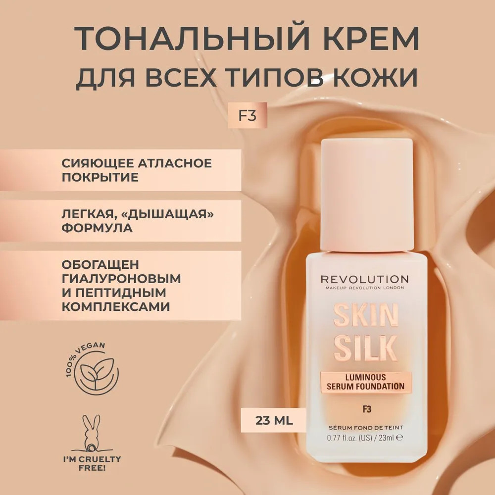 Makeup Revolution Тональная основа для лица «Skin Silk Luminous Serum Foundation», оттенок F3
