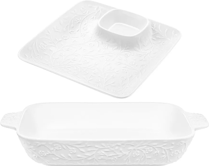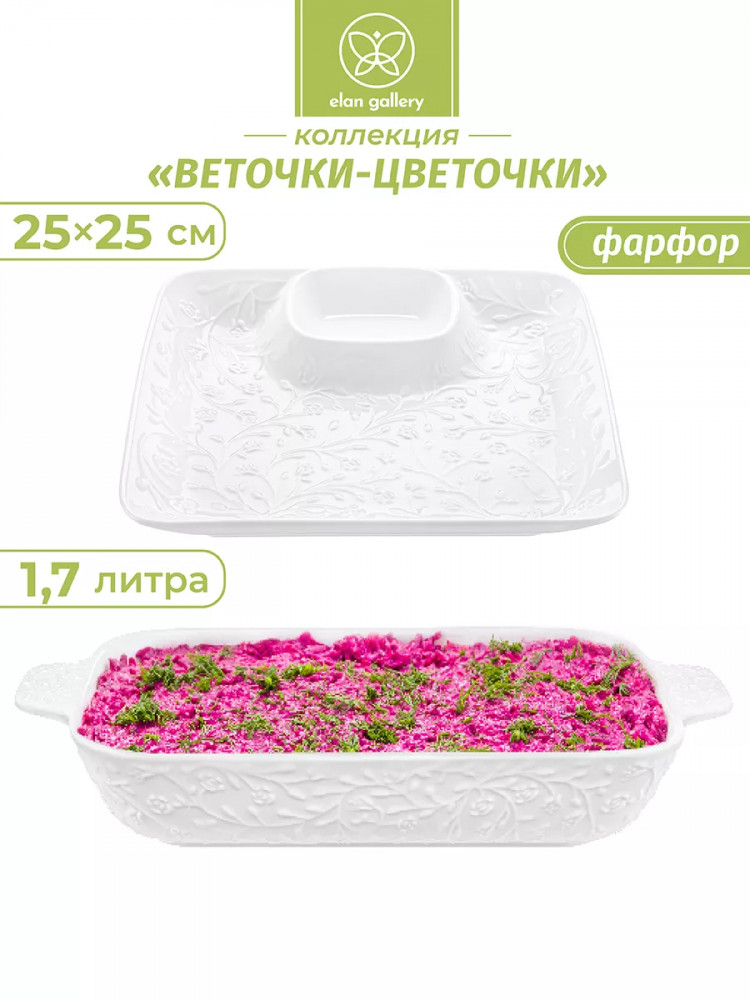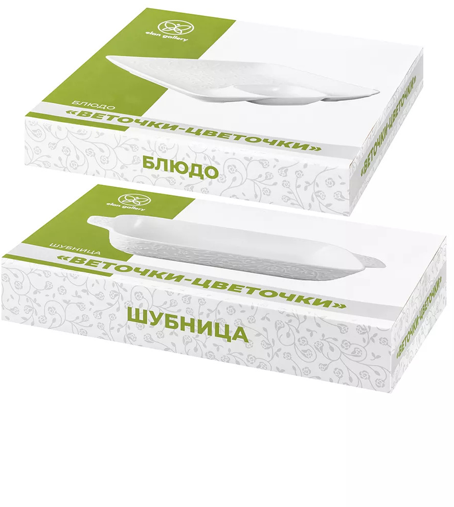 Elan Gallery Набор посуды для сервировки из блюда с соусницей и шубницы «Веточки-цветочки»-20%