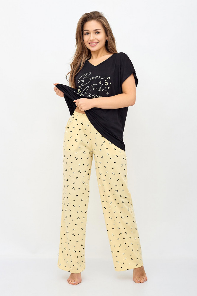 футболка: 95% вискоза, 5% лайкра; брюки: 100% хлоп