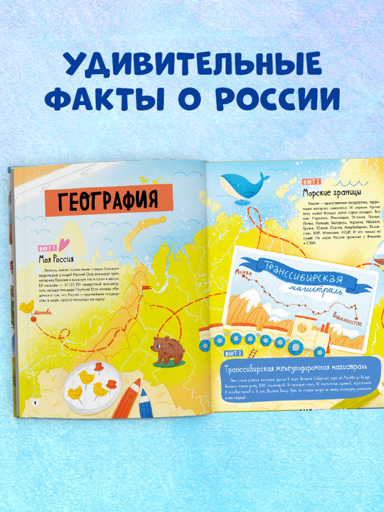 💳 Оплатить за товар можно при получении 🇰🇿 Есть бесплатная доставка по Казахстану 🎁 Копите бонусы с каждой покупки Серия: Удивительные энциклопедии Сколько весит Царь-колокол? Кто такой лигр? Где стоят «7 сестер»? На эти и множество других вопросов ответит энциклопедия «100 фактов о России». Наша страна огромная и полная самых потрясающих чудес. Здесь находится большое пресноводное озеро Байкал, текут могучие реки, живут удивительные животные, развиваются науки и ремесла. Книга замечательного детского автора и педагога Елены Ульевой расскажет маленьким читателям о географии нашей страны, ее истории и культуре. Дети узнают о самых важных датах в истории России, ее памятниках и соборах, прогуляются вместе по самым красивым городам и музеям, посетят Эрмитаж и Звездный городок, познакомятся в выдающимися личностями, оставившими глубокий след в истории не только нашей страны, но и всего мира. |