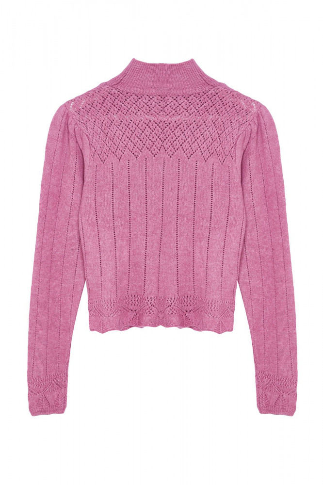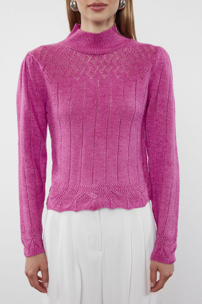 В Пряже нет шерсти. Типа льняных ниток из которых вяжут кружево. Но вязка разная. Рукава, силуэт мне понравились