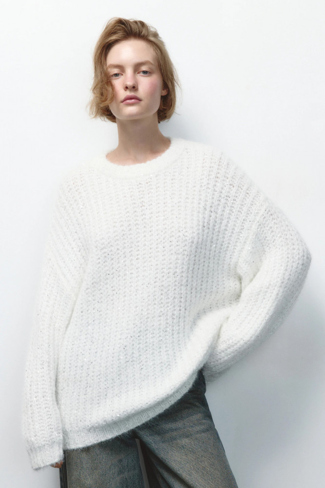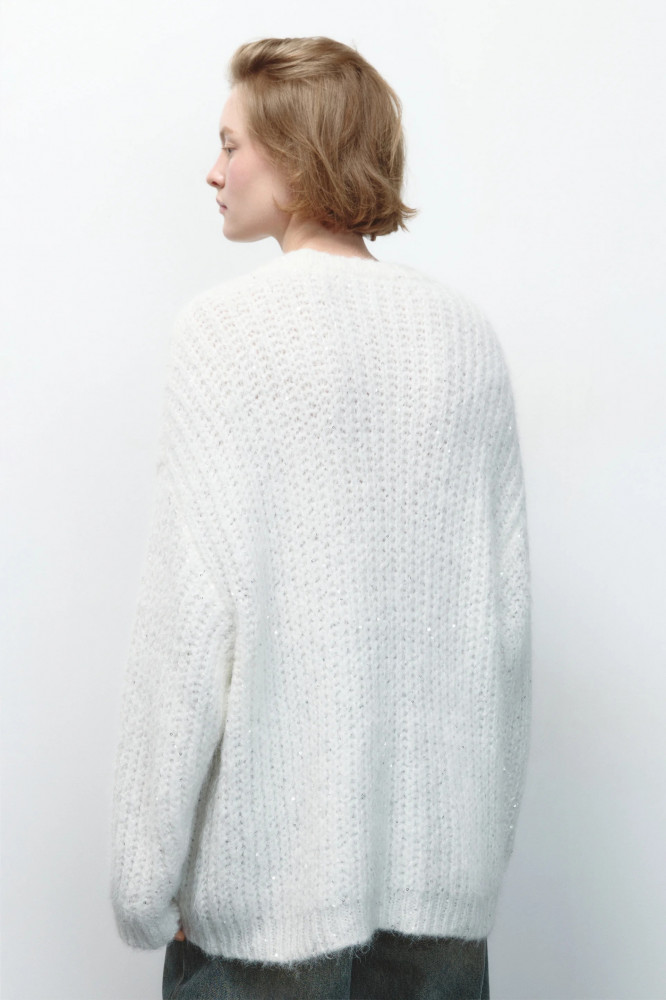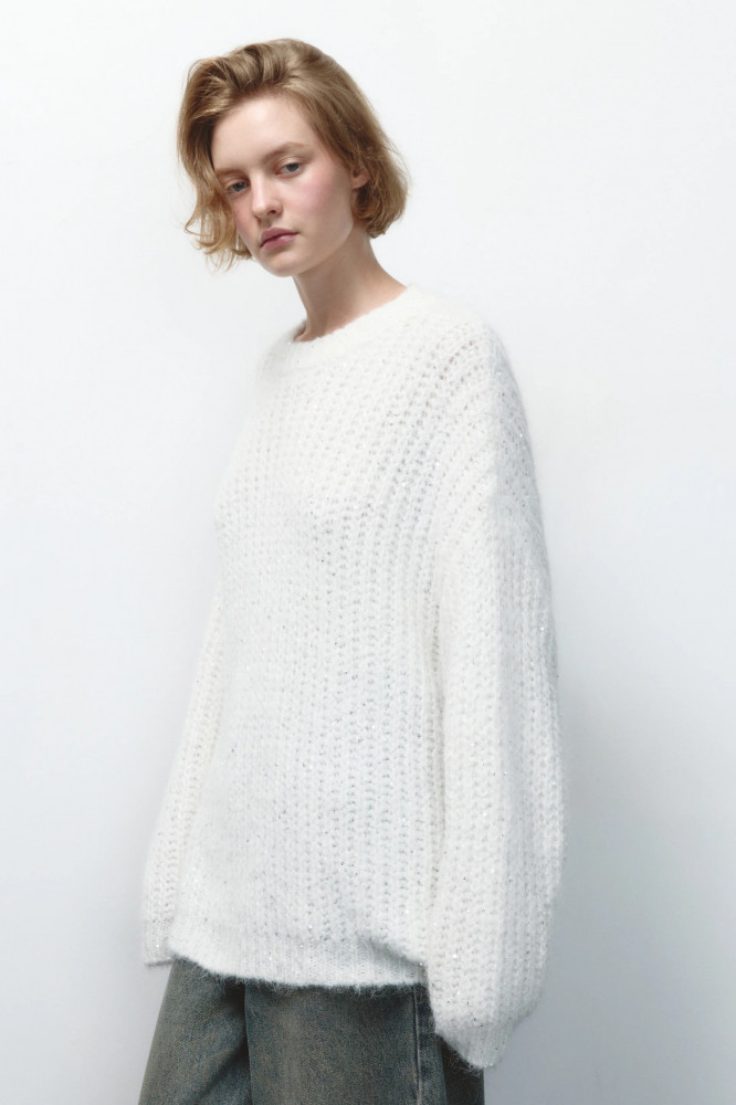 Удлиненный женский джемпер свободного кроя oversize из мягкой, теплой и очень приятной к телу пряжи крупной вязки. Классический круглый вырез горловины в рубчик без воротника. Длинные свободные рукава с широкими манжетами в рубчик и спущенной линией плеча. Прямой нижний край на широкой резинке в рубчик. Сверкающие пайетки по всей длине. Однотонный пуловер в трендовых расцветках из новой зимней коллекции. Теплый, мягкий вязаный свитер с пайетками для расслабленных повседневных и уличных образов на каждый день. Вязаный оверсайз-джемпер идеально подойдет под любой аутфит и настроение: экспериментируй с образами и согревайся со вкусом этой осенью и зимой. Сочетай его с любимым низом и создавай повседневные, школьные, университетские и офисные луки, в которых тебе будет максимально удобно и тепло. Сочетай его с вещами со стразами и пайетками из новогодней коллекции Befree, чтобы затмить всех на вечеринках, корпоративах и торжествах.