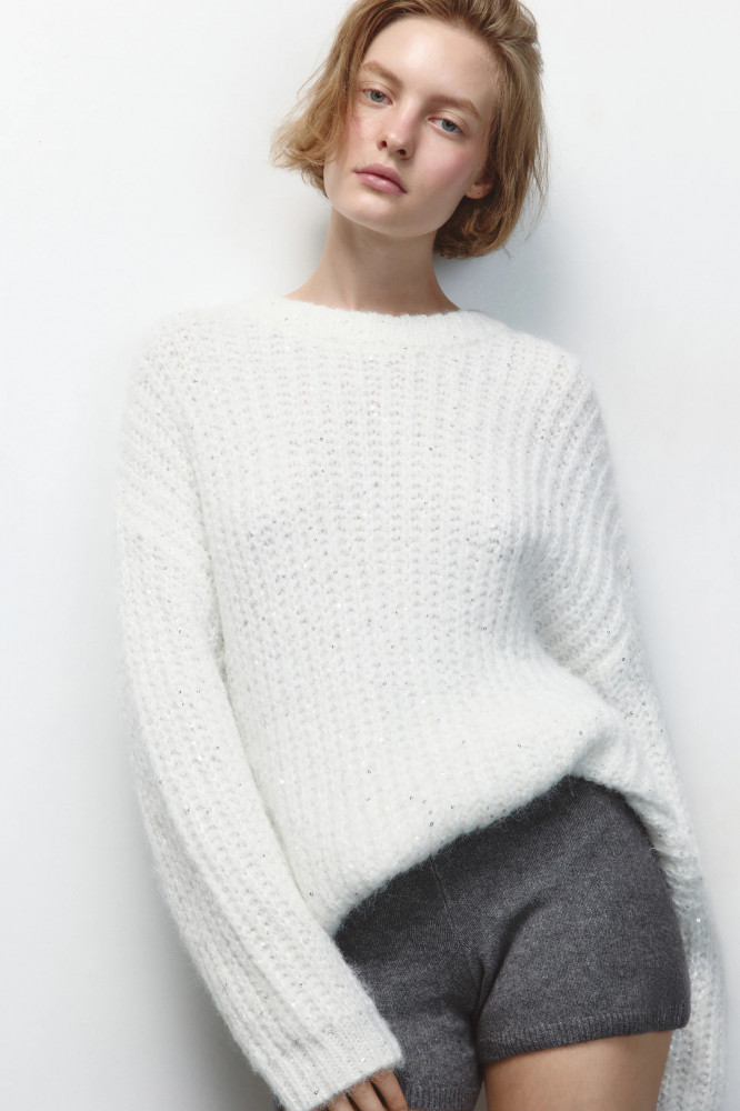 Удлиненный женский джемпер свободного кроя oversize из мягкой, теплой и очень приятной к телу пряжи крупной вязки. Классический круглый вырез горловины в рубчик без воротника. Длинные свободные рукава с широкими манжетами в рубчик и спущенной линией плеча. Прямой нижний край на широкой резинке в рубчик. Сверкающие пайетки по всей длине. Однотонный пуловер в трендовых расцветках из новой зимней коллекции. Теплый, мягкий вязаный свитер с пайетками для расслабленных повседневных и уличных образов на каждый день. Вязаный оверсайз-джемпер идеально подойдет под любой аутфит и настроение: экспериментируй с образами и согревайся со вкусом этой осенью и зимой. Сочетай его с любимым низом и создавай повседневные, школьные, университетские и офисные луки, в которых тебе будет максимально удобно и тепло. Сочетай его с вещами со стразами и пайетками из новогодней коллекции Befree, чтобы затмить всех на вечеринках, корпоративах и торжествах.