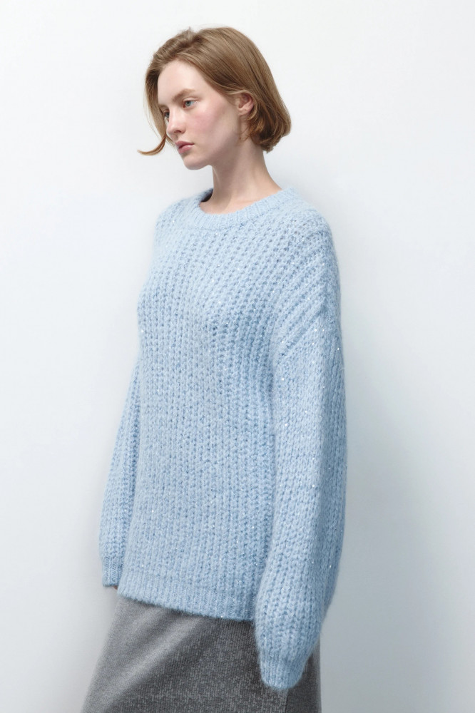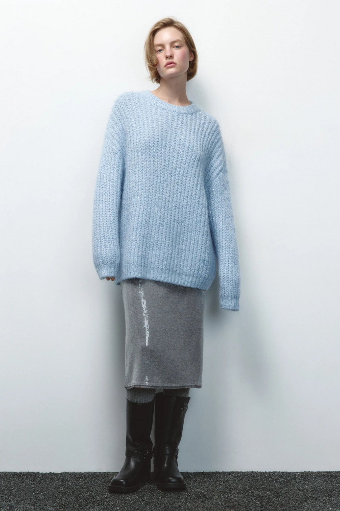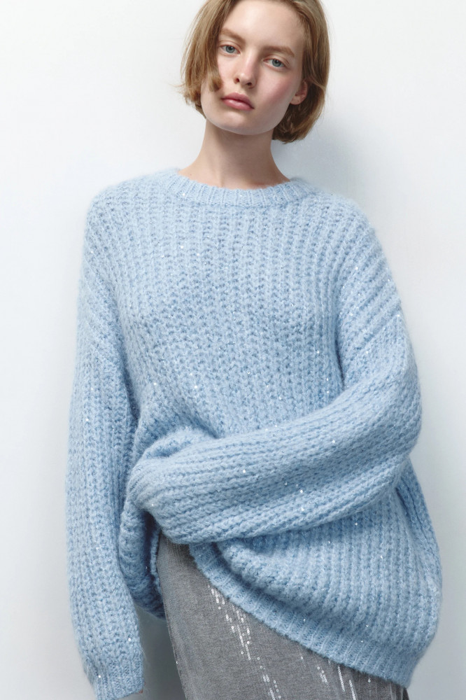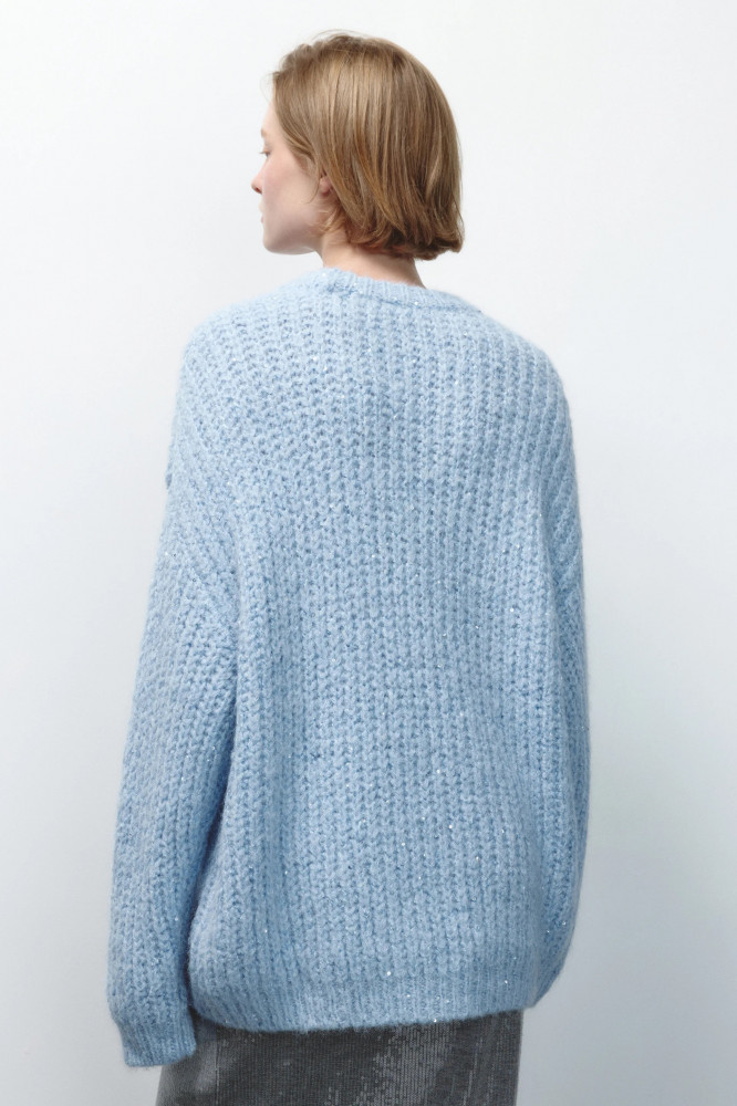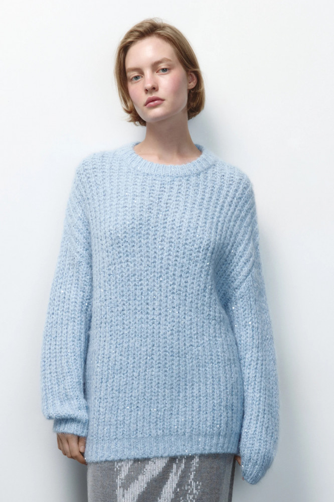 Удлиненный женский джемпер свободного кроя oversize из мягкой, теплой и очень приятной к телу пряжи крупной вязки. Классический круглый вырез горловины в рубчик без воротника. Длинные свободные рукава с широкими манжетами в рубчик и спущенной линией плеча. Прямой нижний край на широкой резинке в рубчик. Сверкающие пайетки по всей длине. Однотонный пуловер в трендовых расцветках из новой зимней коллекции. Теплый, мягкий вязаный свитер с пайетками для расслабленных повседневных и уличных образов на каждый день. Вязаный оверсайз-джемпер идеально подойдет под любой аутфит и настроение: экспериментируй с образами и согревайся со вкусом этой осенью и зимой. Сочетай его с любимым низом и создавай повседневные, школьные, университетские и офисные луки, в которых тебе будет максимально удобно и тепло. Сочетай его с вещами со стразами и пайетками из новогодней коллекции Befree, чтобы затмить всех на вечеринках, корпоративах и торжествах.