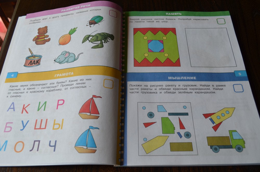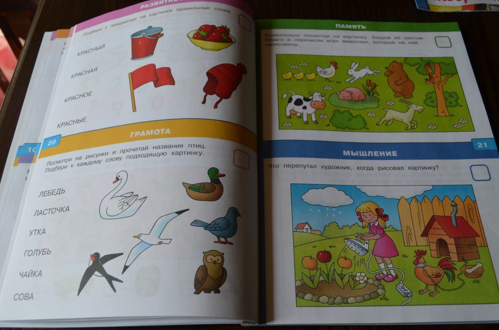 Пособие очень понравилось тем, что задания разнообразные, постоянно меняется направление, развитие речи, мышление, память, внимание и т.д. картинки яркие, дочка выполняла все с удовольствием!!! В конце учебника есть таблица, где вы можете отмечать + - выполнения заданий и видеть всю картину того, с чем справлялся ребёнок легко , а что надо подтянуть. Очень рекомендую !!! Большое спасибо Флипу!!!