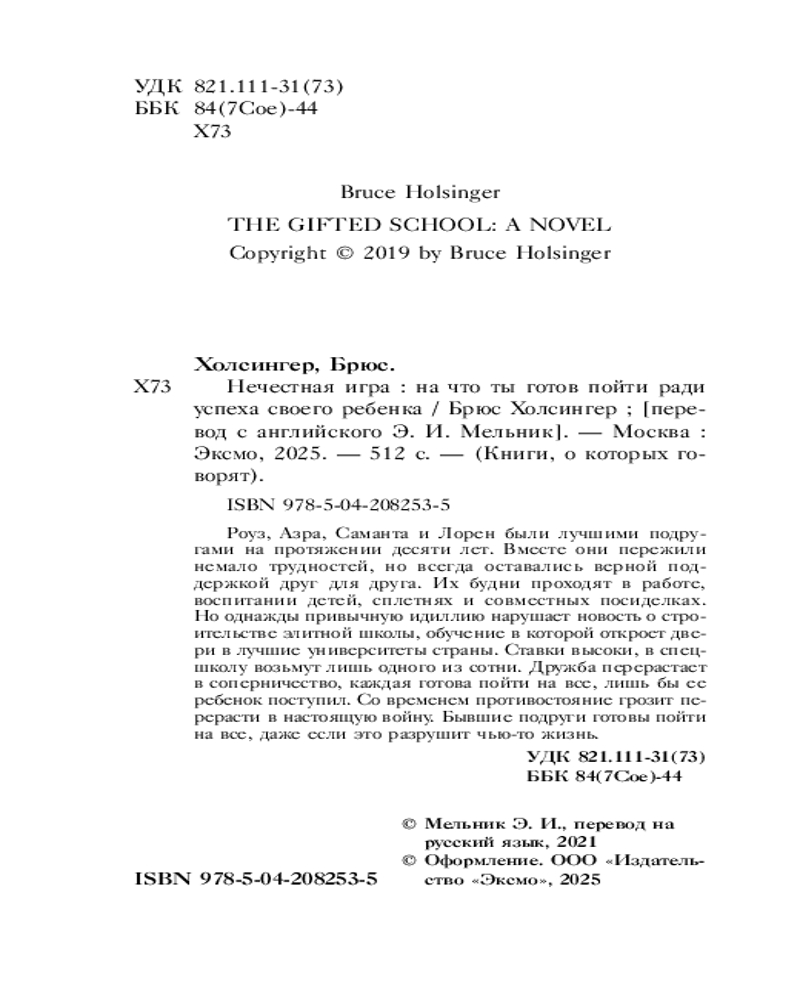 Серия: Книги, о которых говорят В небольшом провинциальном городке Кристал живут четверо лучших подруг, которые за 10 лет дружбы прошли вместе огонь, воду и медные трубы. Роуз — амбициозная врач-невролог, недовольная своим мужем, неудачливым писателем. Пытается сохранить разваливающийся брак ради дочери. Саманта — богатая домохозяйка, у которой есть всё, о чём только можно мечтать. Их с мужем считают самой завидной парой города. Но за идеальным фасадом их брака скрывается страшная тайна. Азра — развелась с мужем, когда узнала, что тот изменял ей с няней. Она всегда готова поддержать и выслушать подруг в трудную минуту, но не уверена, что те готовы сделать для нее то же самое. Лорен — после смерти мужа сосредоточила всё свое внимание на воспитании сына-шахматиста, но совсем забыла про старшую дочь-подростка, у которой полно проблем. |