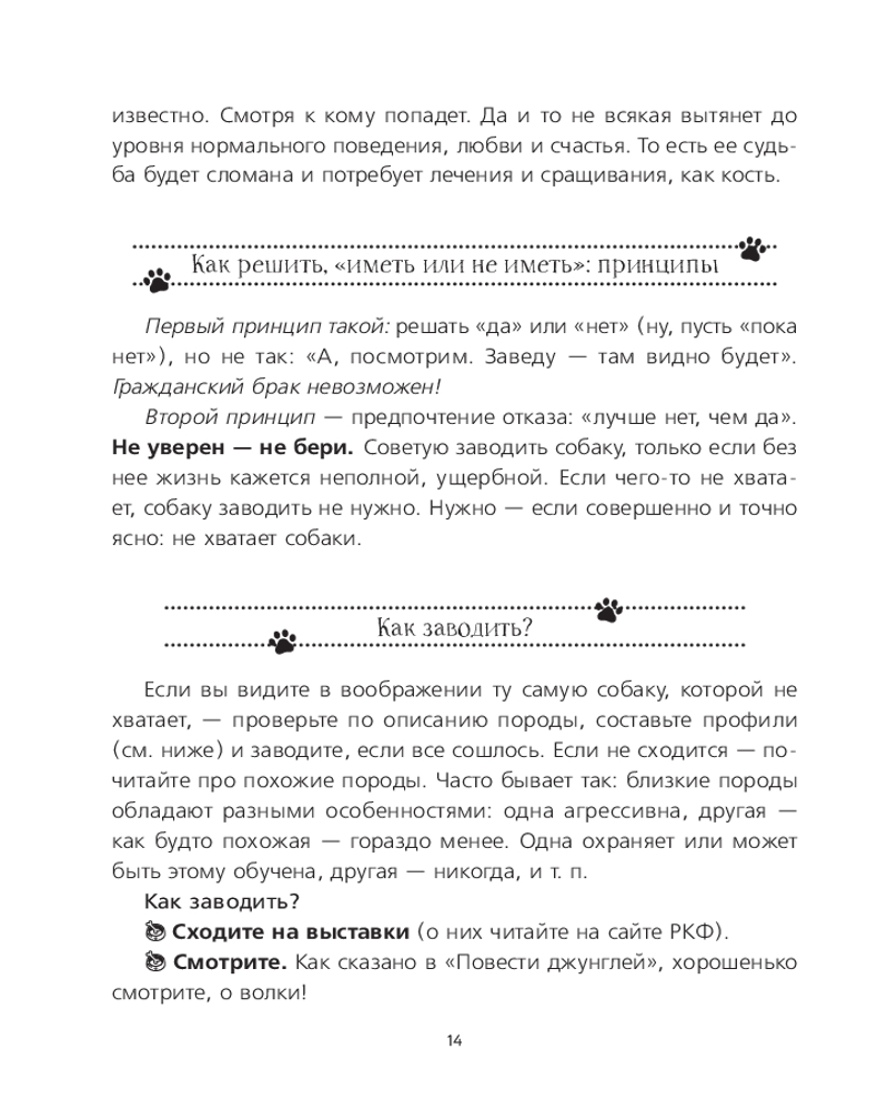 Серия: Полное руководство для детей и их родителей Энциклопедия представляет собой максимально полный свод самых современных и исторически ценных данных о многообразии собак мира. Особое внимание уделено последним и наиболее авторитетным исследованиям происхождения и одомашнивания собаки — генетическим, археологическим, культурологическим. Читатель найдет новейшие научные сведения о диких родственниках домашней собаки, о каждом представителе семейства псовых. Характеристики породных групп и пород следуют классификации РКФ и содержат сведения, необходимые каждому владельцу для понимания особенностей поведения собаки и взаимодействия с ней. Автор делится и личными наблюдениями за дикими псовыми и поведением собак разных пород. Энциклопедию завершает очерк новой кинологической дисциплины — киногеографии с описанием распределения многообразия пород по основным зонам с важнейшими центрами породообразования на карте мира. Книга адресована как всем владельцам, любителям собак, так и профессионалам — кинологам, заводчикам, зоологам. |