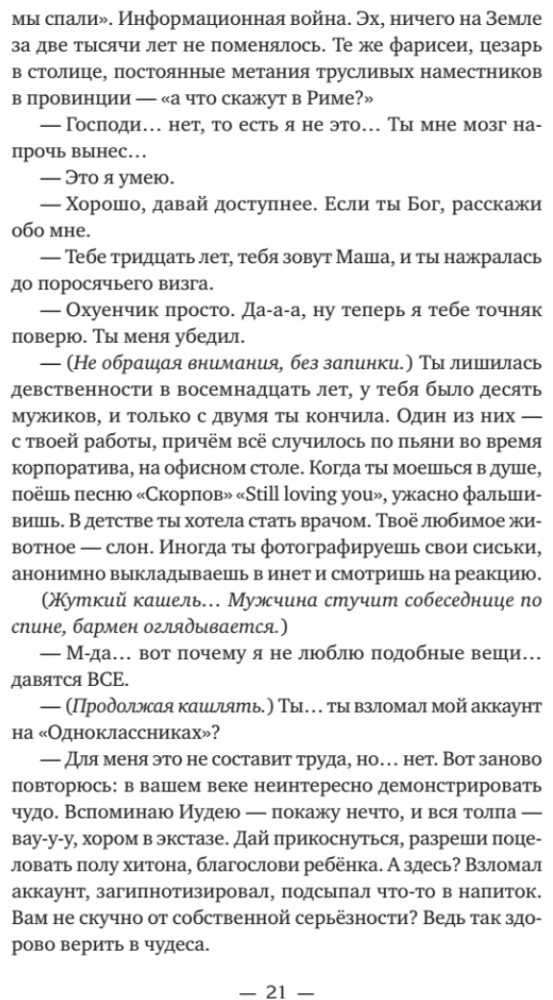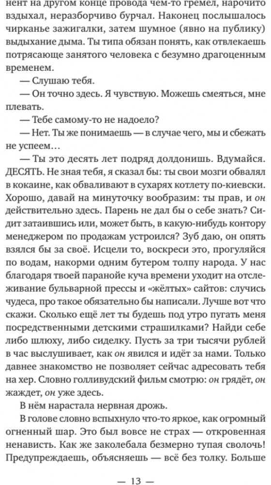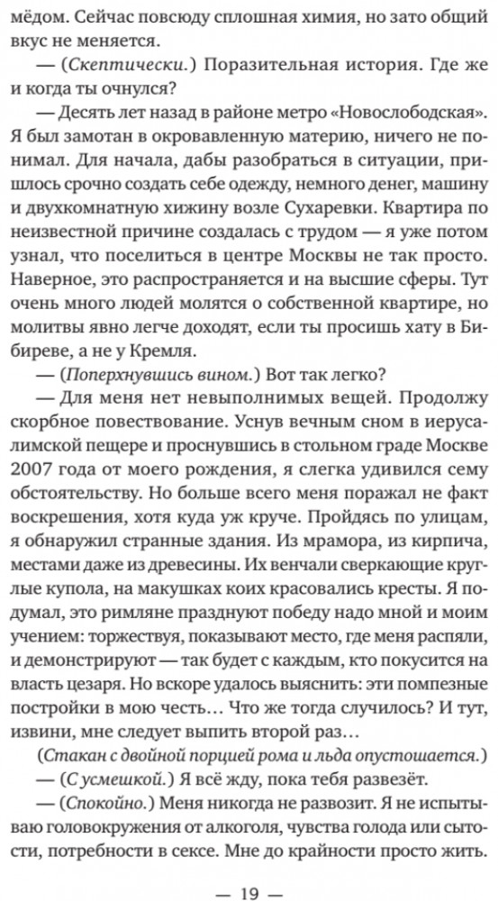 Гарантируем, такую книгу вы ещё не читали. В ней нет абсолютно ничего святого, но зато есть множество всего запретного. Вы когда-нибудь думали, что же случится — если в наш мир внезапно вернутся Христос, Сталин и Пушкин, и самое главное...чем именно им всем придётся сейчас заниматься? Нет? Тогда прочтите этот роман — на свой страх и риск. Официально предупреждаем — подобные книги вызывают привыкание! |