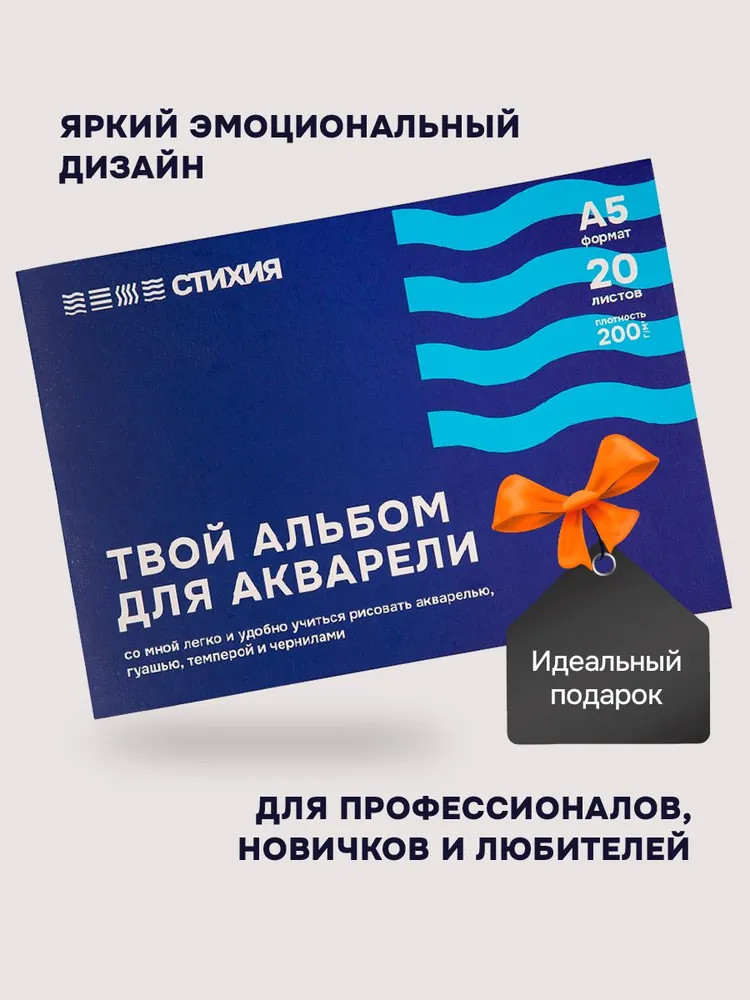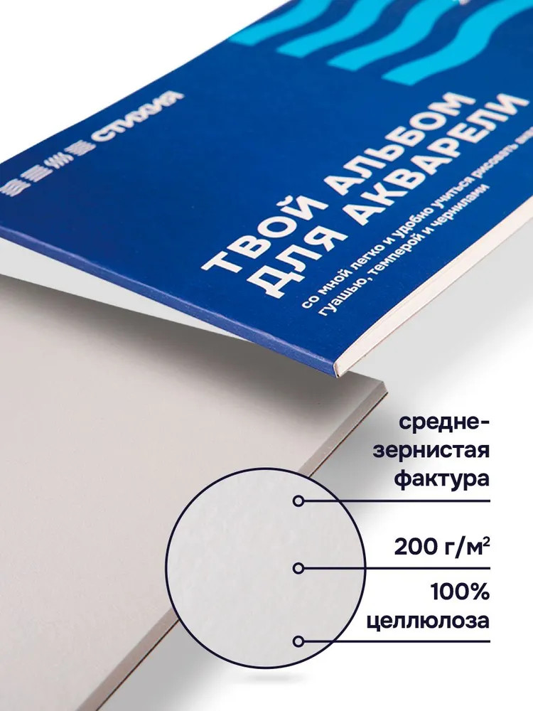 Альбом-склейка для акварели российского бренда «Стихия» прекрасно подходит для студентов и новичков, а также станет отличным подарком для творческих людей.