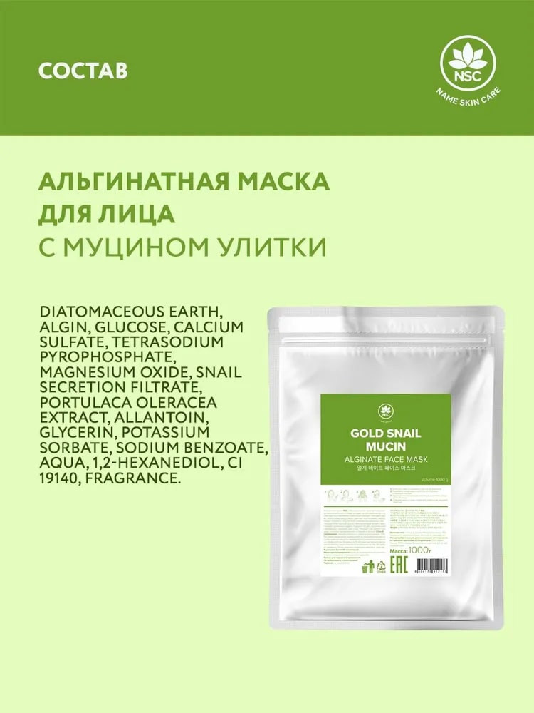 Name skin care Маска для лица альгинатная с муцином улитки «Alginate Face Mask»