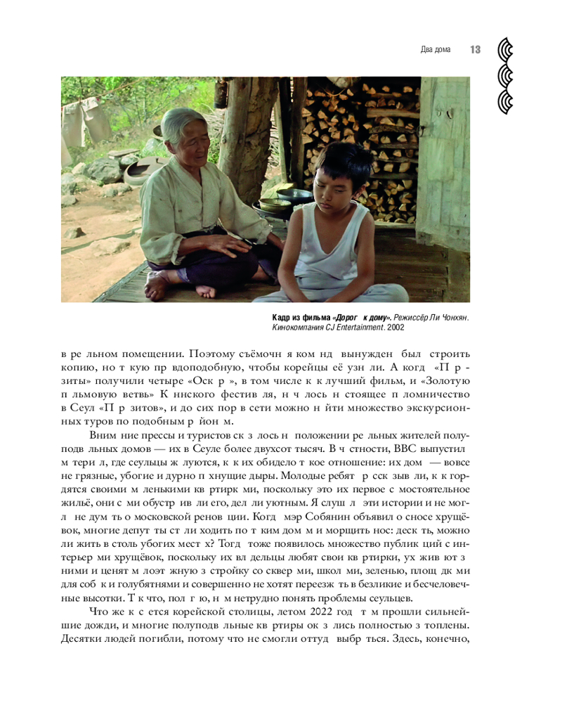 Серия: Искусство. Подарочная энциклопедия Несмотря на название, эта книга вовсе не претендует на энциклопедичность в описании современного корейского искусства и даже не пытается упомянуть всех заметных художников страны. Напротив, она демонстрирует предельно личный выбор тем и сюжетов, например, рассказывает, как художники смотрят на стремительно растущие и обновляющиеся корейские города и понимают, что тех старых бабушкиных домов, где они выросли, больше нет. А именно туда им хочется вернуться. О том, как в восьмидесятые годы художники ели крекеры со связанными руками, а самый первый корейский перформанс, предполагающий полноценное участие аудитории, состоял в совместном со зрителями распивании рисовой бражки макколи и поедании закусок панчханов, да и сейчас мы видим, как у знаменитого режиссёра Хон Сансу его актёры на экране просто едят, пьют и разговаривают ни о чём. Ещё корейские художники и писатели рассказывают о стремительно растущей индустрии красоты и противостояния возрасту, о том, что оглядываясь вокруг, они вдруг обнаруживают себя в окружении ненастоящих людей, может быть, киборгов, а может быть, вся наша реальность — это просто какая-то странная, виртуальная игра. Герои их произведений ощущают желание превратиться в деревья — потому что только деревья живые и настоящие. |