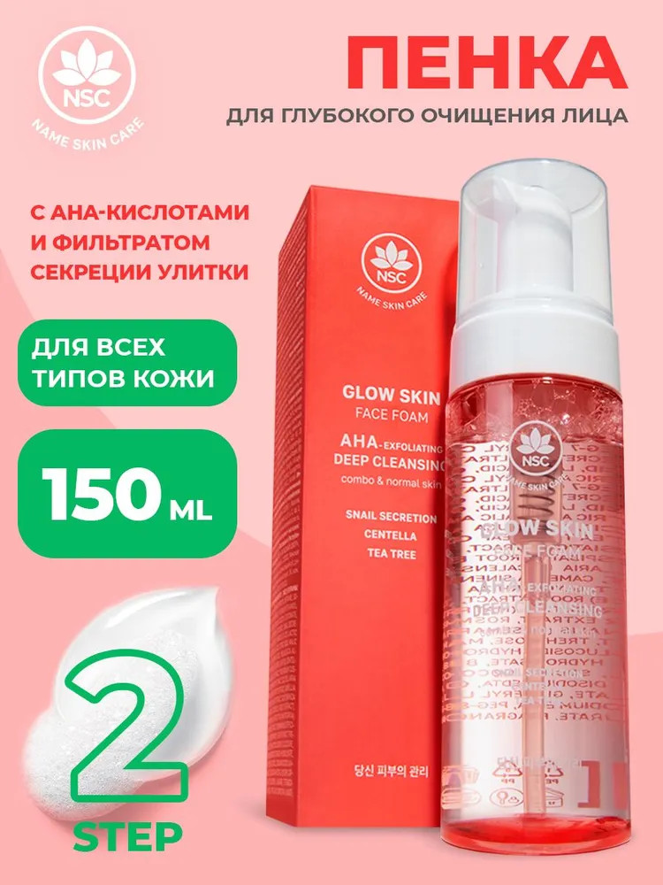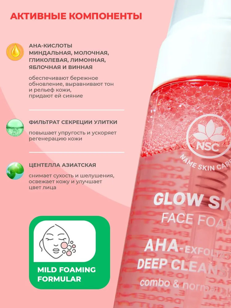 Name skin care Пенка очищающая для лица с aha-кислотами и фильтратом секреции улитки «Glow Skin Face Foam»