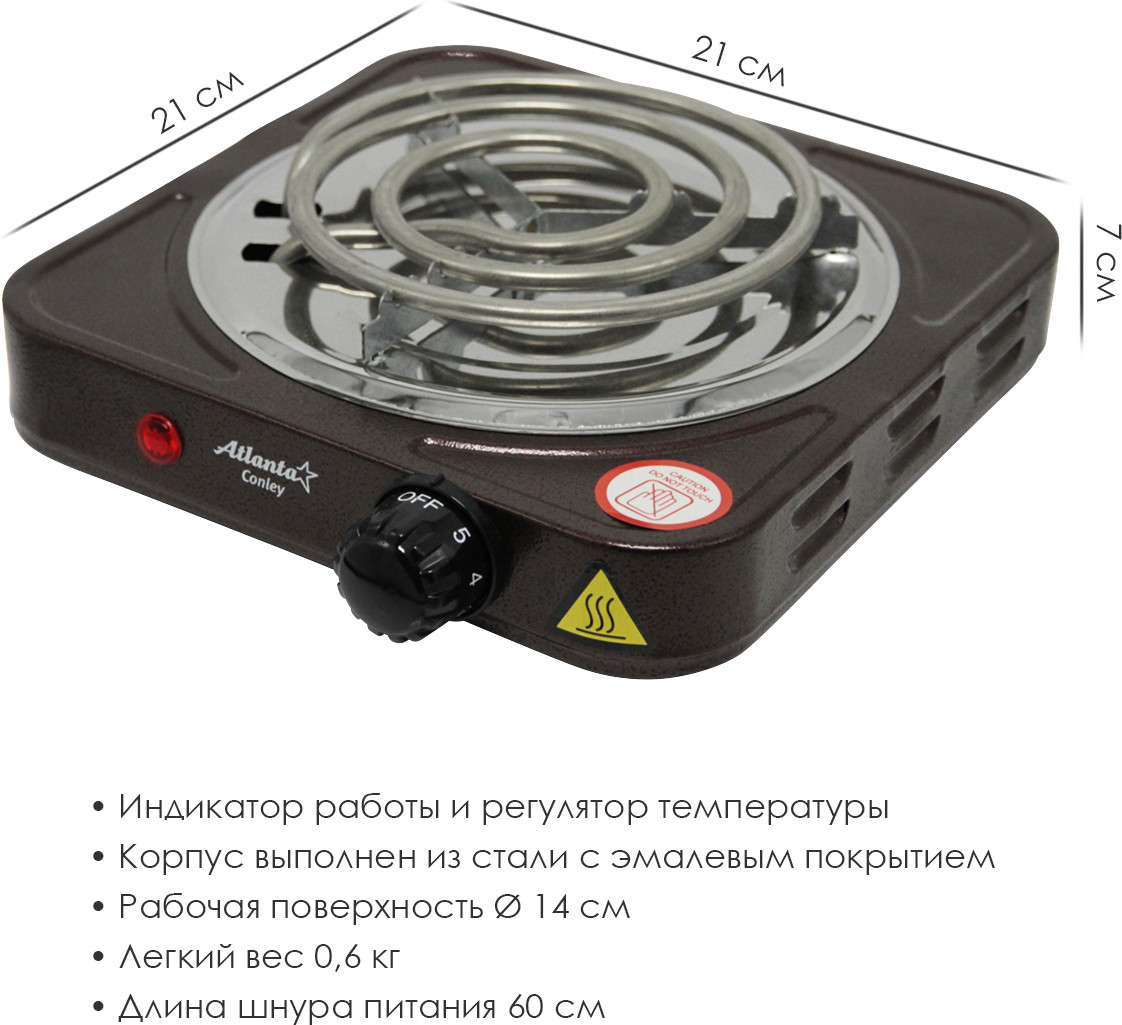 💳 Оплатить за товар можно при получении 🇰🇿 Есть бесплатная доставка по Казахстану 🎁 Копите бонусы с каждой покупки Мощность 1000 Вт, спиральный ТЭН 14 см, стальной корпус с эмалевым покрытием, регулятор температуры (термостат). Плитка оснащена регулируемым термостатом, который управляет ТЭНом в широком диапазоне температуры и позволяет Вам готовить блюда разного объема и рецепта с одинаково отличным результатом. Корпус плитки с композитным покрытием обладает высокой прочностью, устойчивый к воздействию температуры и чистке. Использование исключительно высококачественных материалов позволит Вам пользоваться плиткой долгие годы. |