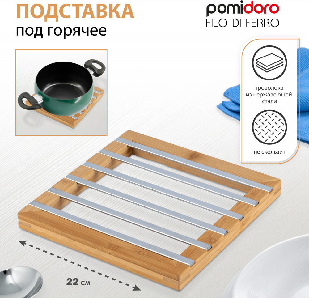 Серия: Filo di ferro Подставка под горячее идеально впишется в интерьер современной кухни. Подходит для сковородок, воков, кастрюль любого размера. Подставка сбережет вашу кухонную мебель от высоких температур. |