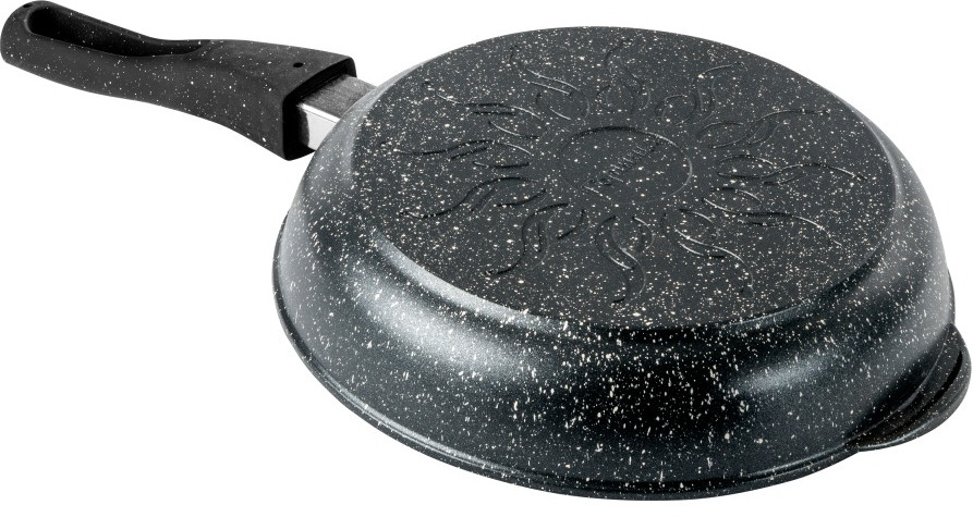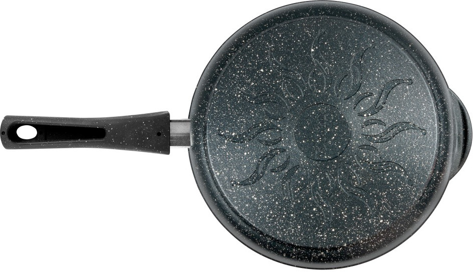 Литая алюминиевая сковорода с антипригарным покрытием — оригинальная посуда, которая подходит для газовых, электрических и стеклокерамических плит. Необходима для приготовления различных продуктов: мяса, овощей, грибов, рыбы и т.д. «Гранит». Коллекция «мраморной посуды» с улучшенным четырёхслойным антипригарным покрытием. Дополнительный слой с мраморным эффектом увеличивает износостойкость и создаёт оттенок серого мрамора. Сковорода литая изготовлена из пищевого алюминия без канцерогенных веществ. Антипригарная сковорода имеет толстые стенки и утолщенное дно, что способствует равномерному распределению тепла и создает благоприятные условия для качественного процесса готовки. Антипригарное покрытие на водной основе не содержит вредных химических соединений. Посуда металлическая имеет гладкую поверхность, что облегчает мытьё. Сковорода со съёмной ручкой может быть применена в духовом шкафу. Ручка для сковороды из бакелита не нагревается и не выскальзывает из рук.