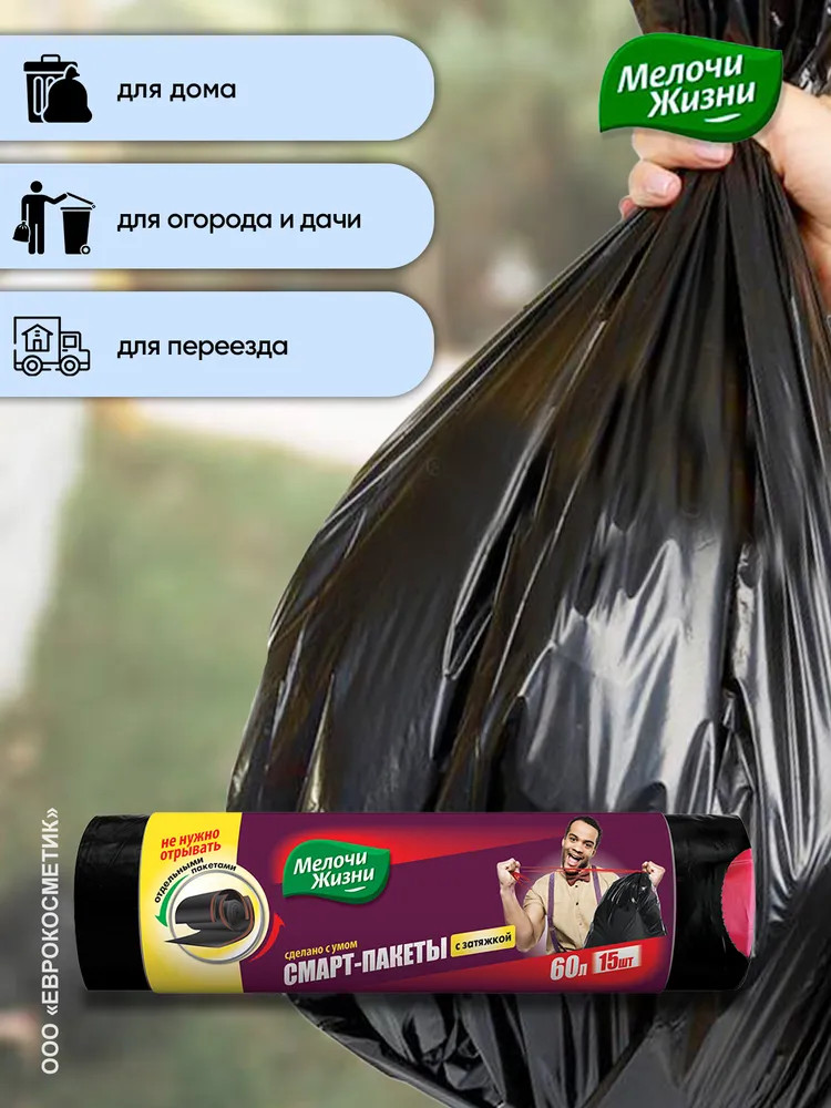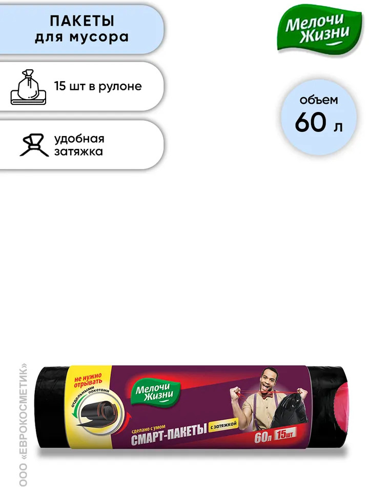 Мелочи жизни Пакеты для мусора с затяжкой+48