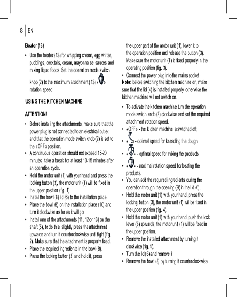 Brayer Кухонная машина BR1504В данный момент этот товар отсутствует в продаже. Возможно, у нас найдется аналогичный или похожий товар здесь. Кухонная машина Brayer BR1504 представляет собой надежное и функциональное устройство, которое станет незаменимым помощником на кухне. Благодаря мощному 1000-ваттному AC мотору и планетарной системе смешивания, она обеспечивает эффективное и равномерное перемешивание ингредиентов. Три скорости работы позволяют подобрать оптимальный режим для различных кулинарных задач. Чаша объемом 4 литра выполнена из нержавеющей стали, что гарантирует долговечность и простоту ухода. В комплект входят три насадки, которые расширяют возможности использования устройства, включая замес теста. Корпус из пластика и нержавеющей стали обеспечивает прочность и современный внешний вид. Кухонная машина Brayer BR1504 сочетает в себе функциональность и удобство, делая процесс приготовления пищи более простым и приятным. |