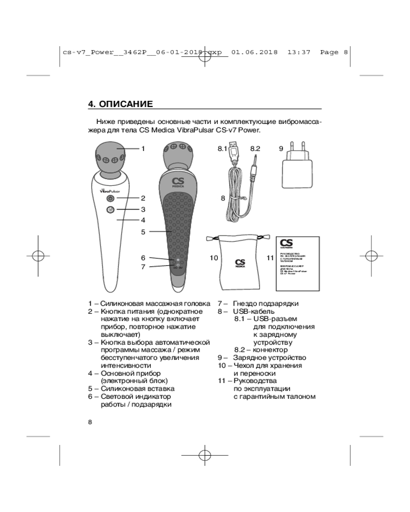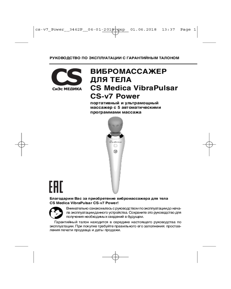 CS Medica Вибромассажер для тела VibraPulsar CS-v7 PowerВ данный момент этот товар отсутствует в продаже. Возможно, у нас найдется аналогичный или похожий товар здесь. Вибромассажер CS Medica VibraPulsar CS-v7 Power — персональный массажист всегда и везде. Беспроводной, водонепроницаемый и легкий! Можно брать с собой в дорогу, использовать в сауне и душе. 5 режимов, 1 насадка. Допустимо применение с антицеллюлитными кремами и массажными маслами — антицеллюлитные процедуры станут еще эффективнее. Плавная регулировка интенсивности — выбирайте комфортную для вас интенсивность. Водонепроницаемый на 100% — позволяет проводить сеанс SPA-массажа в ванной или в душе с использованием различных кремов, а также антицеллюлитных средств. Легкий и беспроводной. Благодаря портативности и отсутствию проводов позволяет самостоятельно проводить эффективный массаж всего тела в любых условиях. Ультрамощный мотор (от 3000 до 8000 уд/мин). Позволяет установить комфортный уровень вибрации. Универсальная зарядка. Позволяет заряжать вибромассажер как от электросети, так и от любого USB-разъема. Вы всегда сможете иметь прибор при себе в любой ситуации. Функция блокировки кнопок Travel Lock. Данная функция позволяет избежать самопроизвольного включения прибора при транспортировке в багаже. |