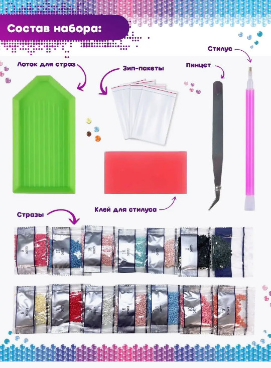 Алмазные картины на канве — это тренд рынка товаров для творчества! И мы создали для вас шикарную коллекцию алмазных мозаик, покоряющую сердца. Самые востребованные дизайны, подтвержденные анализом рынка, придутся по вкусу даже притязательным ценителям блестящих картин для дома. Качественные материалы и модернизированные инструменты для работы позволят в полной мере насладиться творческим процессом. Наша новая алмазная мозаика на канве понравится и детям, и взрослым! Наслаждайтесь творчеством вместе с нами!