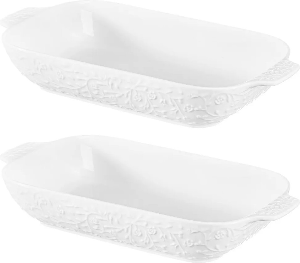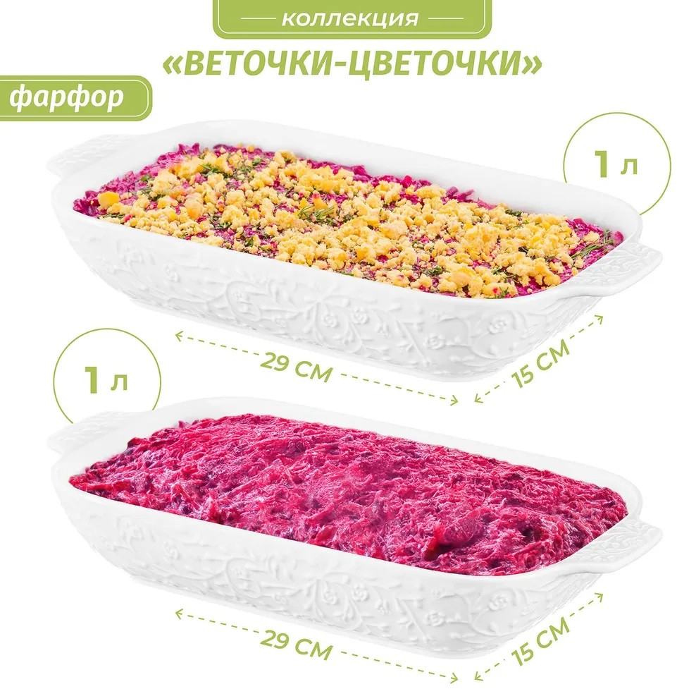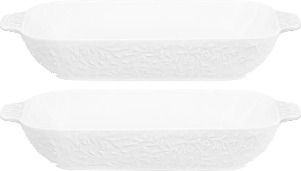 Набор прямоугольных шубниц с ручками Веточки-цветочки предназначен для приготовления и подачи горячих и холодных блюд. Шубницы выполнены из белого фарфора. Красивая декоративная посуда украсит ваш стол как на праздник, так и в будни! Шубницы подойдут для самых разнообразных блюд: селёдки под шубой, салатов или плова. Их также можно использовать как глубокую сервировочную посуду для закусок из мяса и рыбы или десертов. В них можно красиво подать холодец, заливное и желе. Каждая шубница украшена рельефным узором в виде вьющихся лиственных веточек, увенчанных бутонами роз. Благодаря изящному дизайну шубницы подойдут для сервировки стола: они будут сочетаться с любой скатертью и отлично дополнят интерьер вашей кухни или гостиной. Высококачественный фарфор легко отмывается и не впитывает цвет продуктов, поэтому шубницы надолго сохранят свою белизну. Не рекомендуется применять абразивные моющие средства. Подойдут для использования в микроволновой печи и посудомоечной машине. Набор поставляется в плотной картонной упаковке. Он станет отличным подарком на Новый год или Рождество и обязательно порадует любую хозяйку! Серия Веточки-цветочки позволит собрать сервиз в едином стиле и сможет стать настоящим украшением вашего дома.