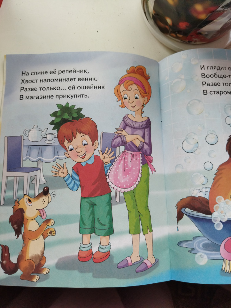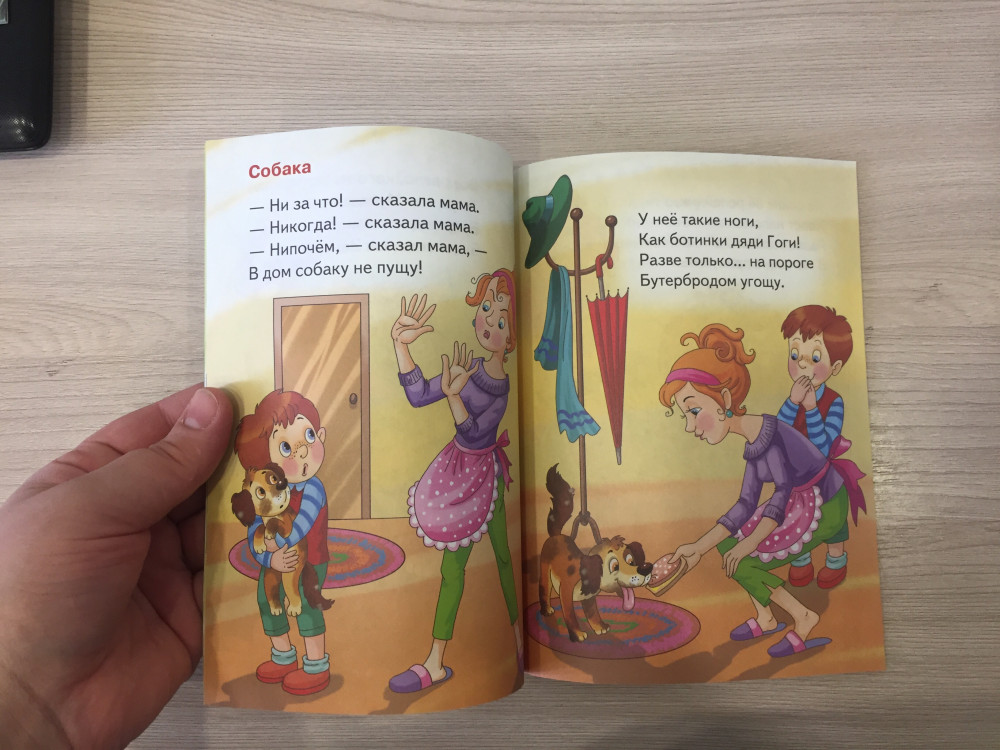 Хорошие стихи.тонкая, резковатый запах красок. Яркая как и вся эта серия. Дочь просит читать про собаку, взял за душу стих. Советую приобрести.