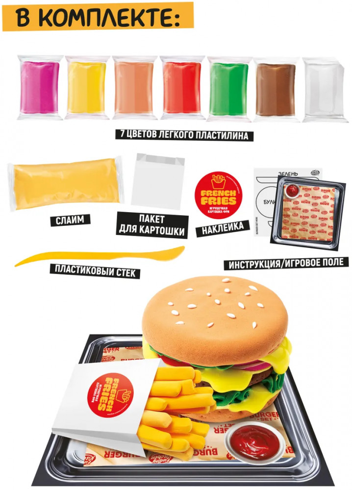 Красочные наборы по созданию игрушечной еды из всевозможных материалов. Легкий пластилин, шариковый пластилин, слайм, вложения! В линейке 4 набора самых популярных блюд у детей. В наборе трафареты для лепки, тематическое поле для игры и видео-инструкция! |