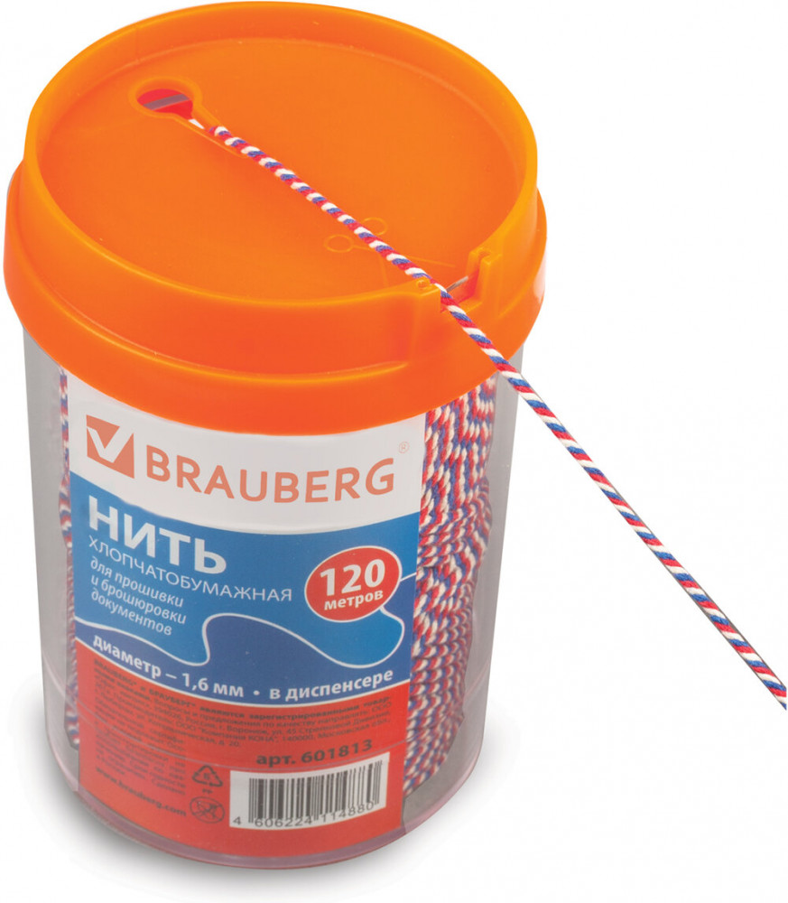 Хлопчатобумажная нить Brauberg широко применяется в рукоделии, декорировании, плетении, для упаковки и обвязки товаров, почтовых посылок. Отлично подходит для опечатывания и прошивки документов в банках, офисах, нотариальных конторах.