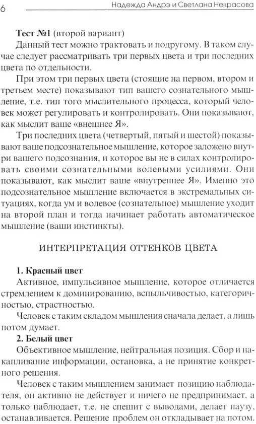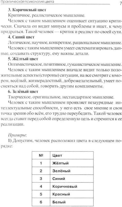 Практическая психология цветаСветлана Некрасова, Надежда Андрэ В данный момент этот товар отсутствует в продаже. Возможно, у нас найдется аналогичный или похожий товар здесь. Цвет оказывает огромное влияние и на жизнь человека. Чем больше разного цвета в нашем окружении, тем больше радости и счастья в наших сердцах. Цвет — это подарок самой природы нам, без него наша жизнь была бы скучной, монотонной и неинтересной. Оздоровительные свойства цвета или лечение цветом применяются уже несколько тысяч лет. Цвет влияет на эмоциональное состояние человека, на настроение и самочувствие. Цветом можно воздействовать на духовный рост и совершенствование человека. Меняя цвета, мы можем не только менять настроение, но и улучшить качество жизни. Каждый цвет имеет свое специфическое воздействие: либо стимулирующее, либо подавляющее. Цвет посылает простые и сложные сигналы, а мы на них интуитивно реагируем. Цвет может привлекать и отталкивать, успокаивать и стимулировать, соблазнять и возбуждать. Реакция человека на воздействие цвета очень сильно зависит от физического и психического состояния человека. Это позволяет использовать связанные с применением цвета методики для диагностики психологического состояния человека. |