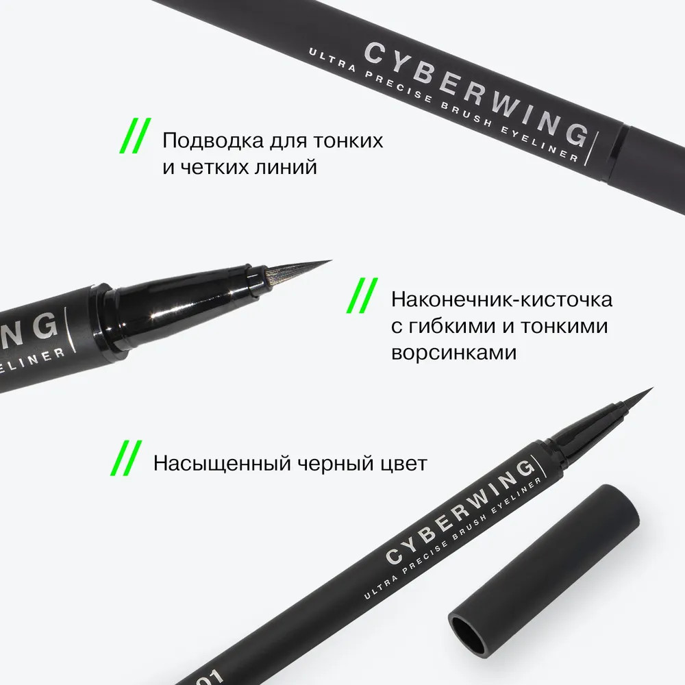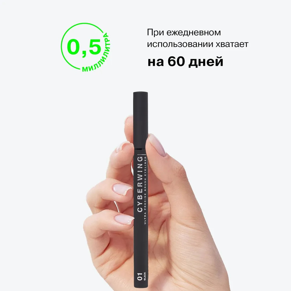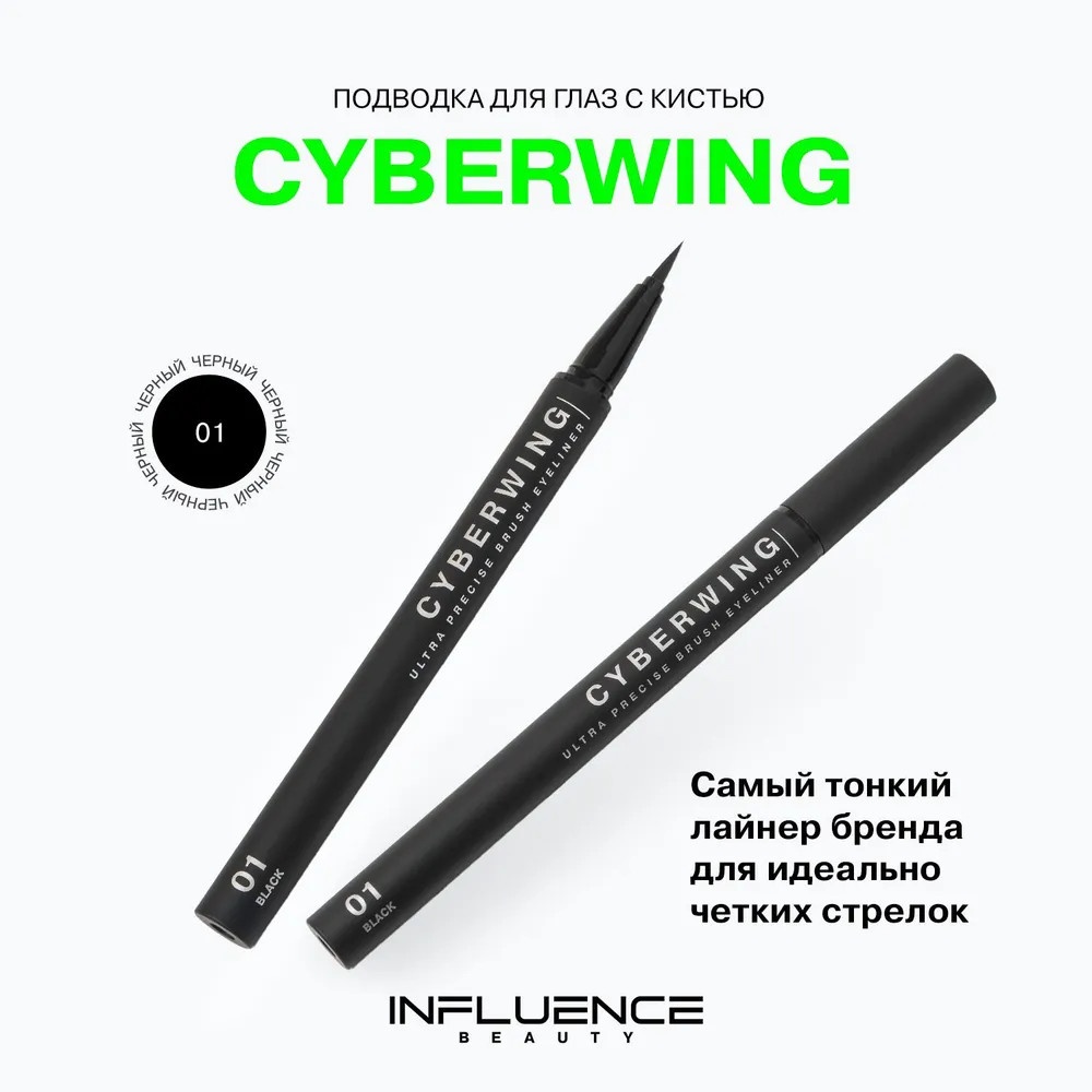 Influence Beauty Подводка для глаз с ультратонкой кистью «Cyberwing», оттенок 01 Черный