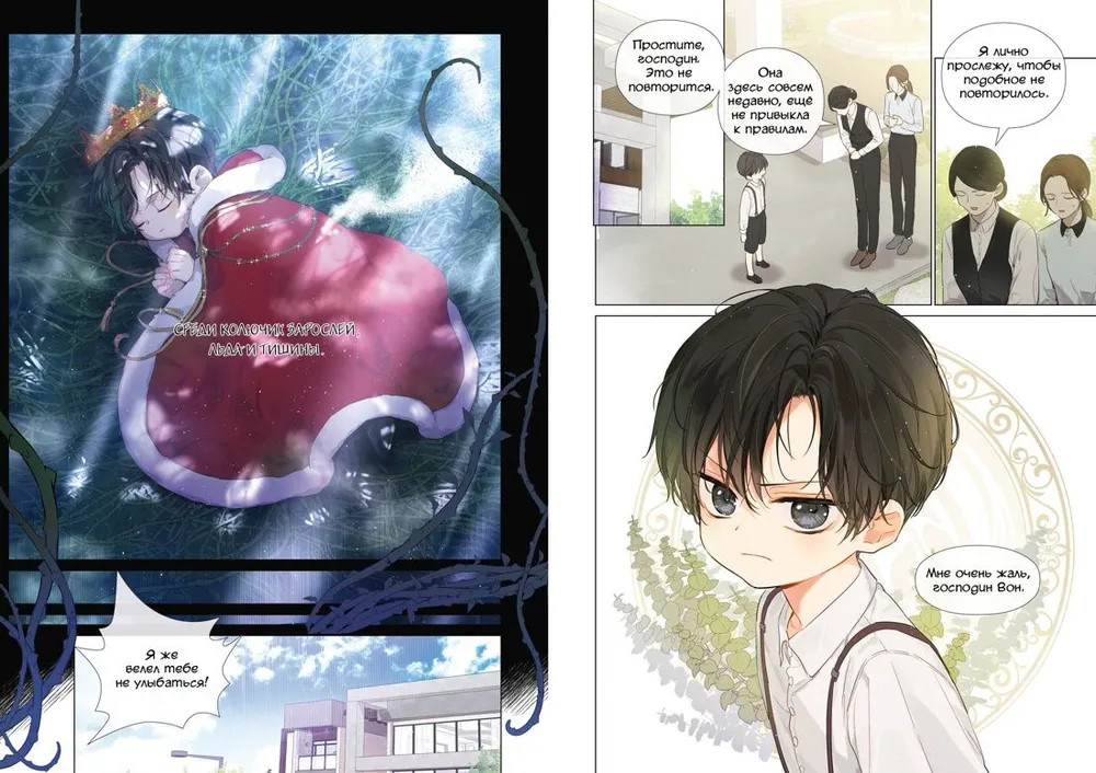 Серия: Азия. Лучшие вебтуны Ку Вон — юный и серьёзный наследник корпорации «Королевство». Его отец очень строг, сестра холодна, а сам мальчик видит только учёбу, ведь в будущем ему предстоит возглавить компанию. Чхон Саран — единственная дочь простой горничной. Непосредственная и жизнерадостная, Саран любит маму и бабушку и обожает общение. Однажды Ку Вон встречает в саду Чхон Саран, и с тех пор в его жизни появляются улыбки, смех и теплота. Впрочем, вскоре строгий отец Вона увольняет мать Саран, и дети надолго разлучаются. Смогут ли они увидеться вновь и узнают ли друг друга? |