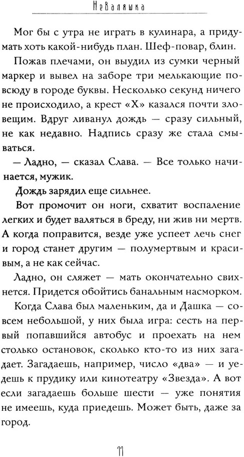В провинциальном российском городе Н. творятся очень странные дела. На вокзале появился подозрительно элегантный мужчина, местные светлячки ведут себя совершенно необъяснимо, а Даша увлеклась недавно приехавшим в город молодым человеком, который — возможно ли это? — обладает сверхъестественными способностями. Вот только все это, кажется, привело к большой беде, и последствия придется расхлебывать Д ашиному младшему брату Славе, жизнь у которого и так не сахар. |