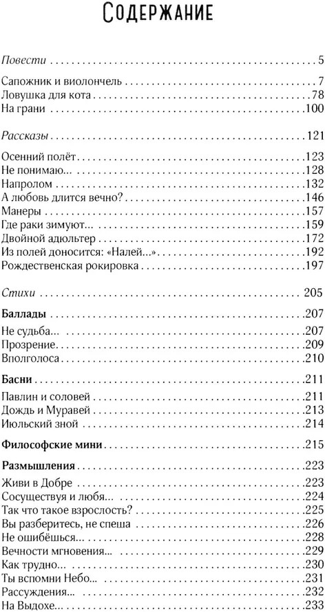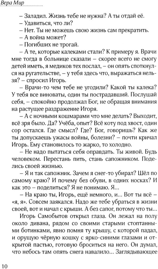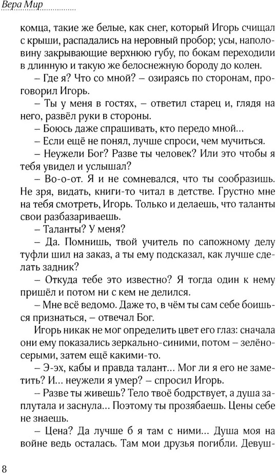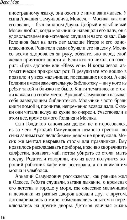 Творчество талантливого писателя Веры Мир представляет собой новое направление, которое занимает особую нишу на стыке художественной литературы, психологии и философии. Успешно дебютировав книгой «Апельсиновый суп», где автор делится секретами получения доверия и уважения детей, Вера Мир прочно укрепила свои литературные позиции. За первой книгой вскоре последовали другие: сборник повестей и рассказов «Притяжение добра», книга прозы и стихов «Неслучайные случайности». Герои произведений Веры Мир надолго остаются в памяти читателей, становясь родными и близкими. |