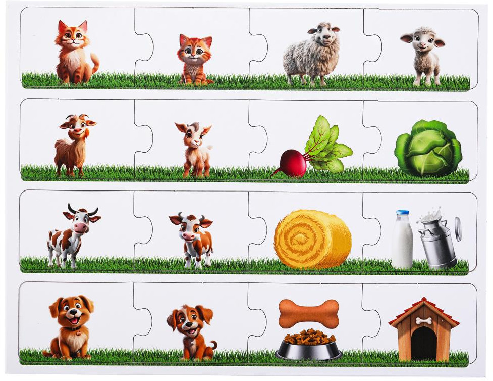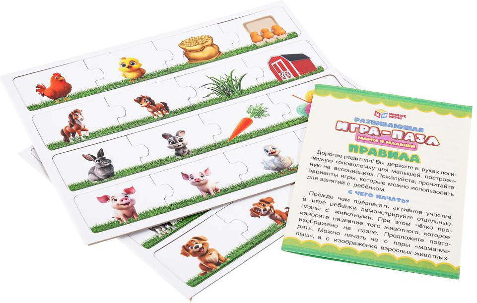 💳 Оплатить за товар можно при получении 🇰🇿 Есть бесплатная доставка по Казахстану 🎁 Копите бонусы с каждой покупки Развивающая игра-пазл «Мамы и малыши» ТМ «Умные игры» — образовательная игра в форме пазлов цепочек: |