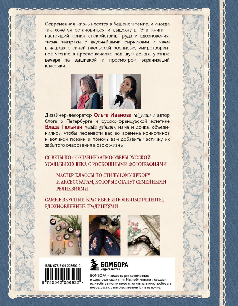 Серия: Русская школа рукоделия Современная жизнь несется в бешеном темпе, каждый день приносит новый стресс, появляются миллионы новых товаров, которые не проживут и года. И, как никогда раньше, хочется остановиться, выдохнуть, и обратиться к чему-то вечному, незыблемому. Поискать вдохновения не в зыбком будущем, а в знакомом прошлом. Эта книга — настоящий приют спокойствия, труда и вдохновения: тихие завтраки с вкуснейшими сырниками и чаем в чашках с синей гжельской росписью, умиротворенное чтение в кресле-качалке под шум дождя, уютные вечера за вышивкой и просмотром экранизаций классики... |