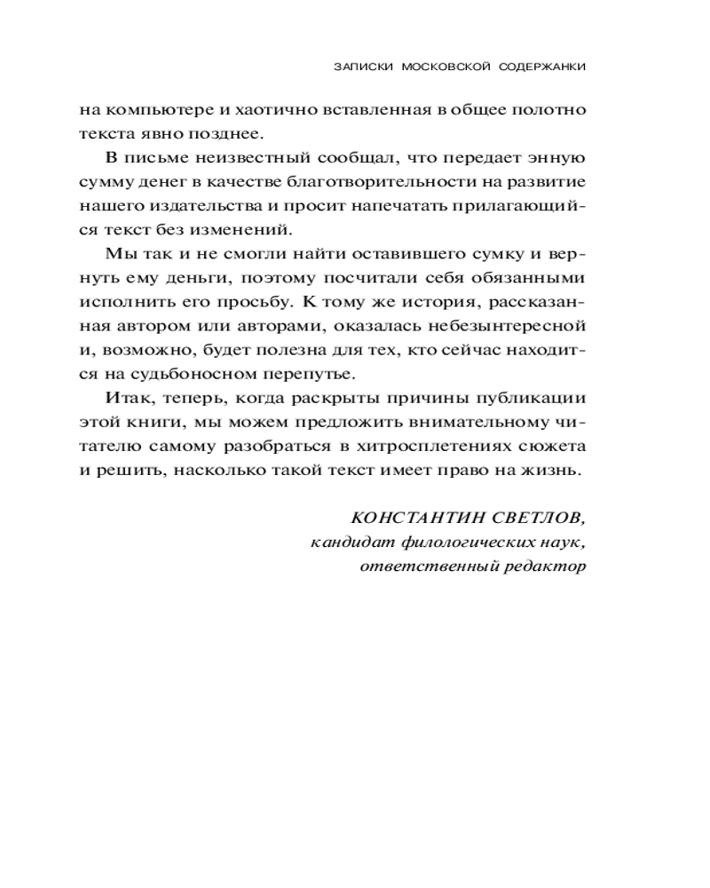 «Искрометная книга про будни содержанок. Истории, которые вы вряд ли где-то услышите еще. Будоражит! Заставляет смеяться, плакать, а иногда застыть от удивления: „Такое тоже бывает?“ Помогает посмотреть на свою жизнь со стороны и начать ценить ее еще больше». — Лариса Парфентьева, писатель |