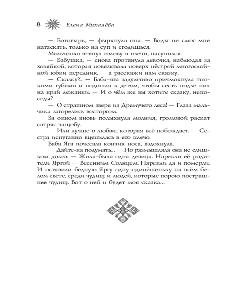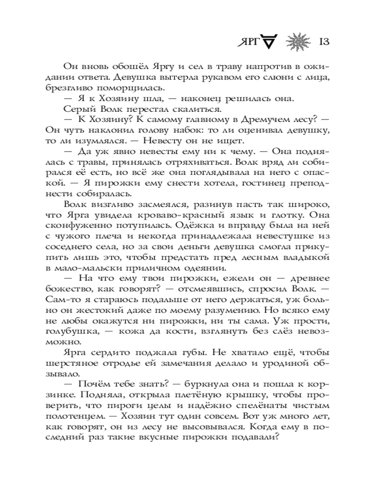 Серия: Страшные сказки со всего света. Ретеллинги Ярга — сирота и недотёпа. Она ищет лёгкий способ обрести счастье и обращается за помощью к кровожадному лесному божеству. Вот только вместо божества ей встречается хитрый Серый Волк. Да и желанный жених Иван-царевич не спешит с «жили они долго и счастливо». Вместо свадебного пира он отправляет Яргу на поиски Жар-птицы. Они приведут к опасным приключениям... или, быть может, приключения подарят истинную любовь? Добро пожаловать в мир славянского фольклора и тёмной сказки, где всё нам с детства знакомо, но далеко не очевидно! |
