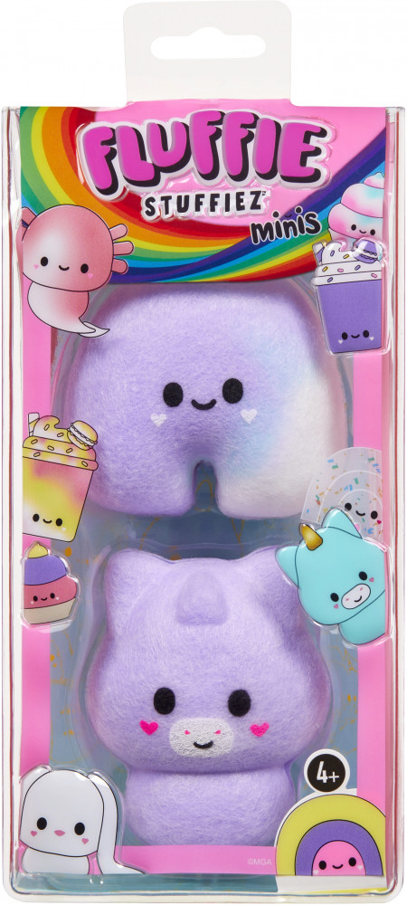 В коллекции 22 персонажа, и среди них — ультра-редкий золотой единорог. Найди его и собери всю коллекцию Флаффи Стаффиз Мини! В игровой набор Флаффи Стаффиз Мини входят 2 мини-персонажа высотой 7 см со специальным верхним слоем, который можно снять. Сюрприз — цвет игрушки после снятия верхнего слоя.