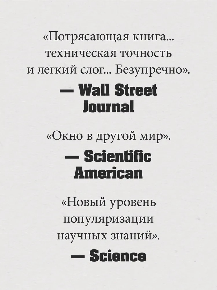 💳 Оплатить за товар можно при получении 🇰🇿 Есть бесплатная доставка по Казахстану 🎁 Копите бонусы с каждой покупки Серия: New Science Ученые знают о том, как устроен наш мир, Вселенная, но знания эти чаще всего выражаются в виде формул, которые кажутся нам беспорядочным нагромождением букв и символов. Благодаря Шону Кэрроллу вы увидите в них вдохновляющую поэзию, взлетите в небеса, окрыленный ею, чтобы смотреть на чудесную многомерную страну — искривленное пространство-время — в которой живут сияющие гиганты и действуют могучие силы. Высшая математика, словно веками полировавшийся алмаз, сама по себе достойна не меньшего восхищения, чем «Мона Лиза». Это язык, на котором написаны научные поэмы о черных дырах. |