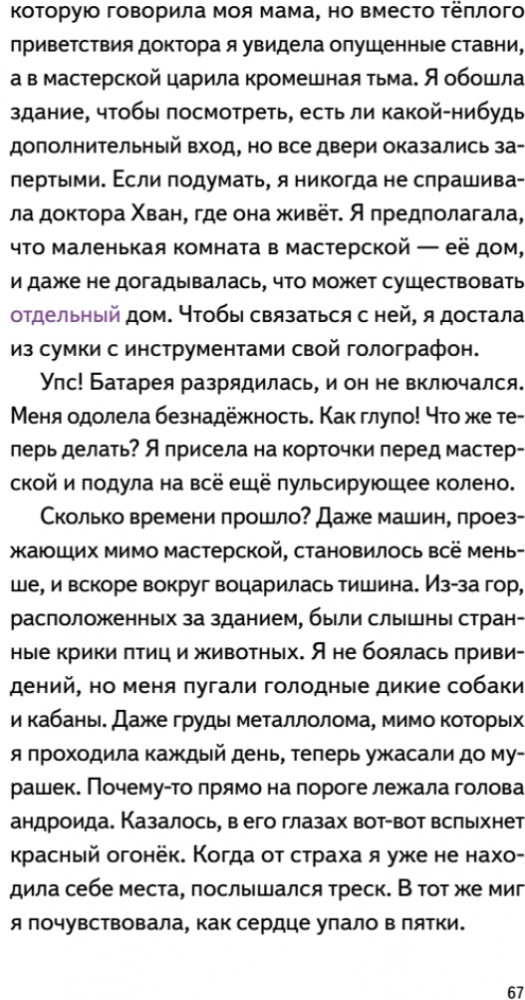 Серия: Вы и ваш ребенок Меня зовут Ким Юна. Я рождена клонированием маминых генов, а еще я попала в большую катастрофу. Отныне я должна жить в маленьком городке в доме у бабушки, вдали от мамы, которая скоро отправится на Марс. В этом нет ничего такого, ведь моя бабушка — самая обычная бабушка: она ходит в универмаги, много и вкусно готовит и всячески оберегает меня от любой опасности. За одним маленьким «но»: моя бабушка — киборг. |