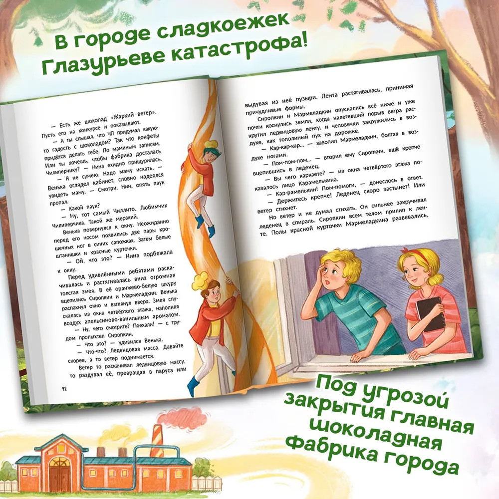 Серия: Детский детектив В городе сладкоежек Глазурьеве катастрофа! Кондитерские магазины закрыты, сладости на вес золота, а все кондитеры лишились памяти и не могут вспомнить ни одного сладкого рецепта! Под угрозой закрытия и шоколадная фабрика. Если это случится, погибнут все сладкие человечки! Кто же найдёт причину катастрофы и спасёт человечков и кондитеров, а вместе с ними и весь город? Близнецы Венька и Нина начинают расследование. Куда оно их приведёт? |