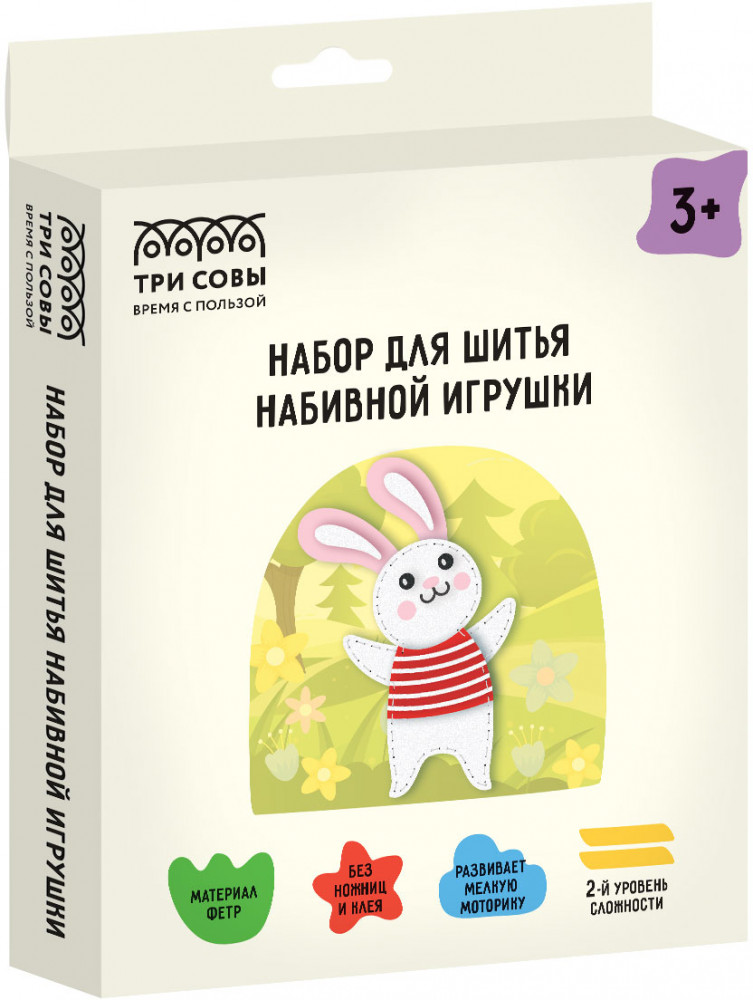 Три совы Набор для шитья «Зайка»В данный момент этот товар отсутствует в продаже. Возможно, у нас найдется аналогичный или похожий товар здесь. Работа над поделками из фетра — очень увлекательное занятие. С помощью набора для шитья игрушки бренда «Три Совы» без клея и ножниц ваш ребенок сможет сделать настоящее произведение искусства. В набор «Зайка» входит всё, что необходимо для работы. Это занятие не только способствует формированию усидчивости и терпению, воображения и внимания, но и развивает мелкую моторику рук и мышление. |