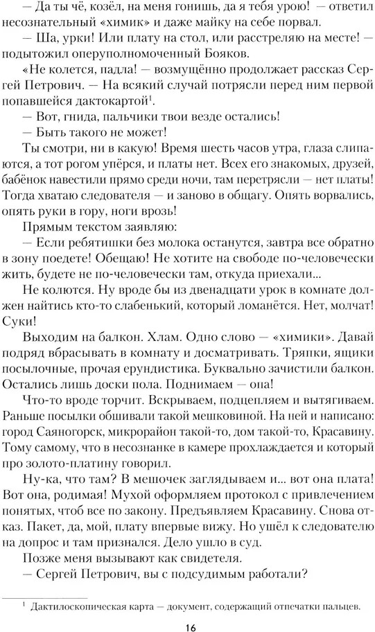 Сломанный нож. Книга 1В данный момент этот товар отсутствует в продаже. Возможно, у нас найдется аналогичный или похожий товар здесь. Серия: Ярость 90-х «Сломанный нож» — не конкретный предмет (хотя ножей в тексте хватает), не символ и не аллегория. Это суть обстоятельств, при которых с началом 90х годов вчерашние советские милиционеры и прокуроры были вынуждены ломать нож криминала чуть ли не голыми руками. К чему готовы не все, не всегда и не везде. В том числе и в Хакасии, где многие территории оказались под властью бандитов, негодяев и отморозков. Но в отличие от соседей республика с бедой справилась и стала "красной".Как? Об этом и рассказ, где нет выдуманных героев и сюжетов. Всё реально, жёстко, правдиво, местами иронично. Засады и погони, задержания и допросы, подставы от своих и помощь от чужих, захват Минусинской тюрьмы и едва не вспыхнувший бой между милиционерами в аэропорту Норильска. Свидетельства от первого лица, ранее закрытая информация, плюс факты, моменты, подробности, нюансы того времени, о которых никто не знал и не догадывался. Гремучая смесь в одном флаконе, содержание которого вы можете проглотить одним читательским глотком. |
