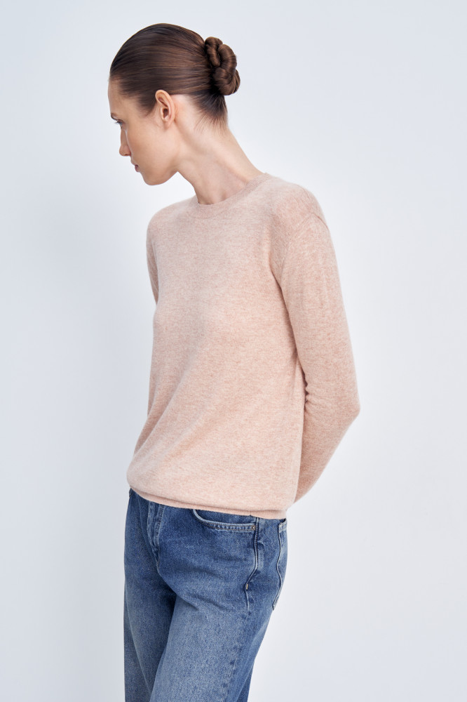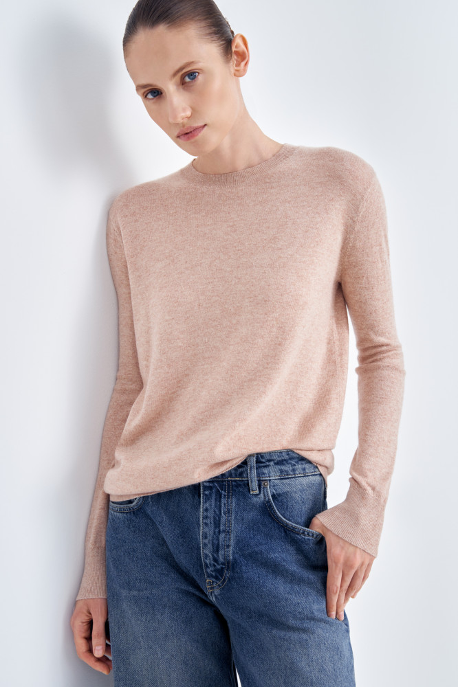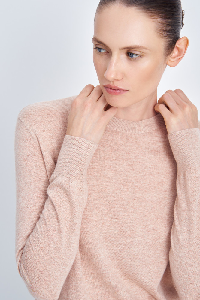 Базовый женский джемпер с круглым вырезом. Выполнен из смесовой вискозы с добавлением синтетических волокон и кашемира. Мягкая ткань хорошо пропускает воздух, отличается прочностью и характерной кашемировой фактурой. Модель прямого кроя с облегающей посадкой не стесняет движений. Джемпер сочетается с джинсами, брюками, юбкой. Отлично впишется в образы как самостоятельный «верх», так и в качестве нижнего слоя — под жилет, жакет или кардиган. Допустима бережная машинная стирка.