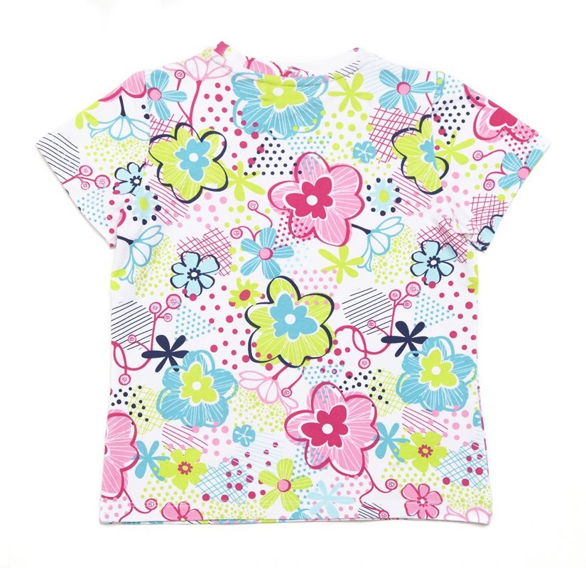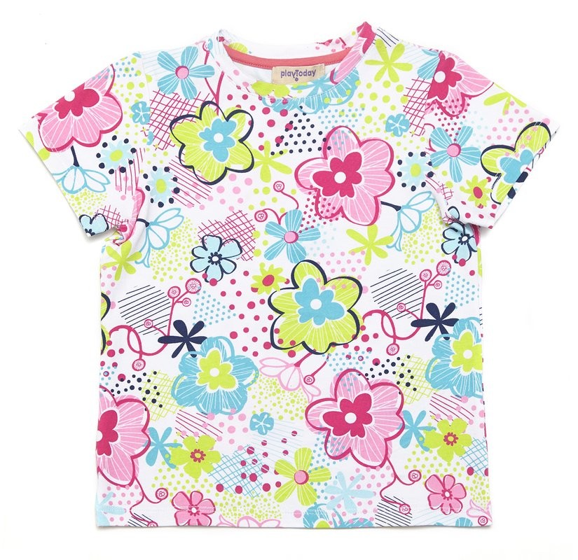 Футболка такая же яркая как и на картинке, приятная на ощупь. Дочке понравилась, но с учетом того, что майка рассчитана на возраст 3-4 года, рост 104 см, мы ее носим сейчас, а нам 2г 6м.